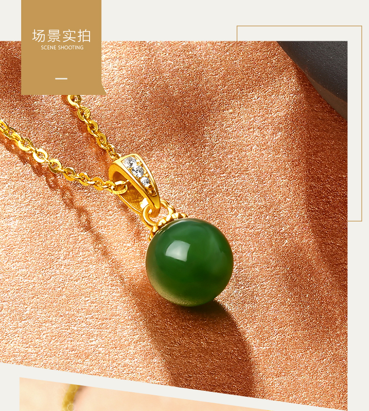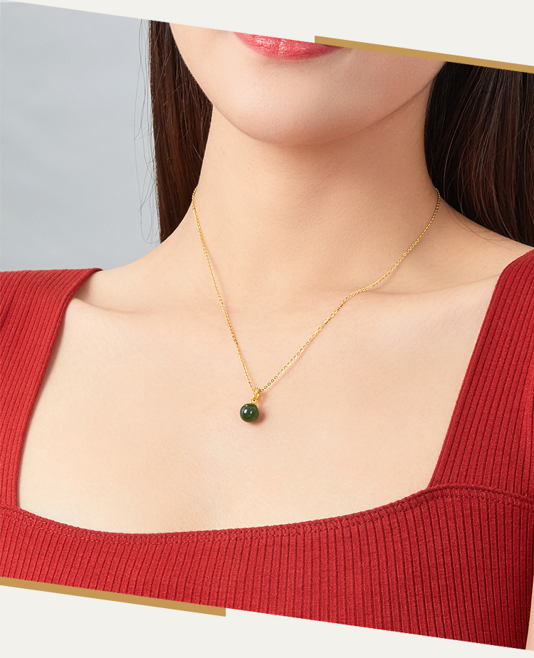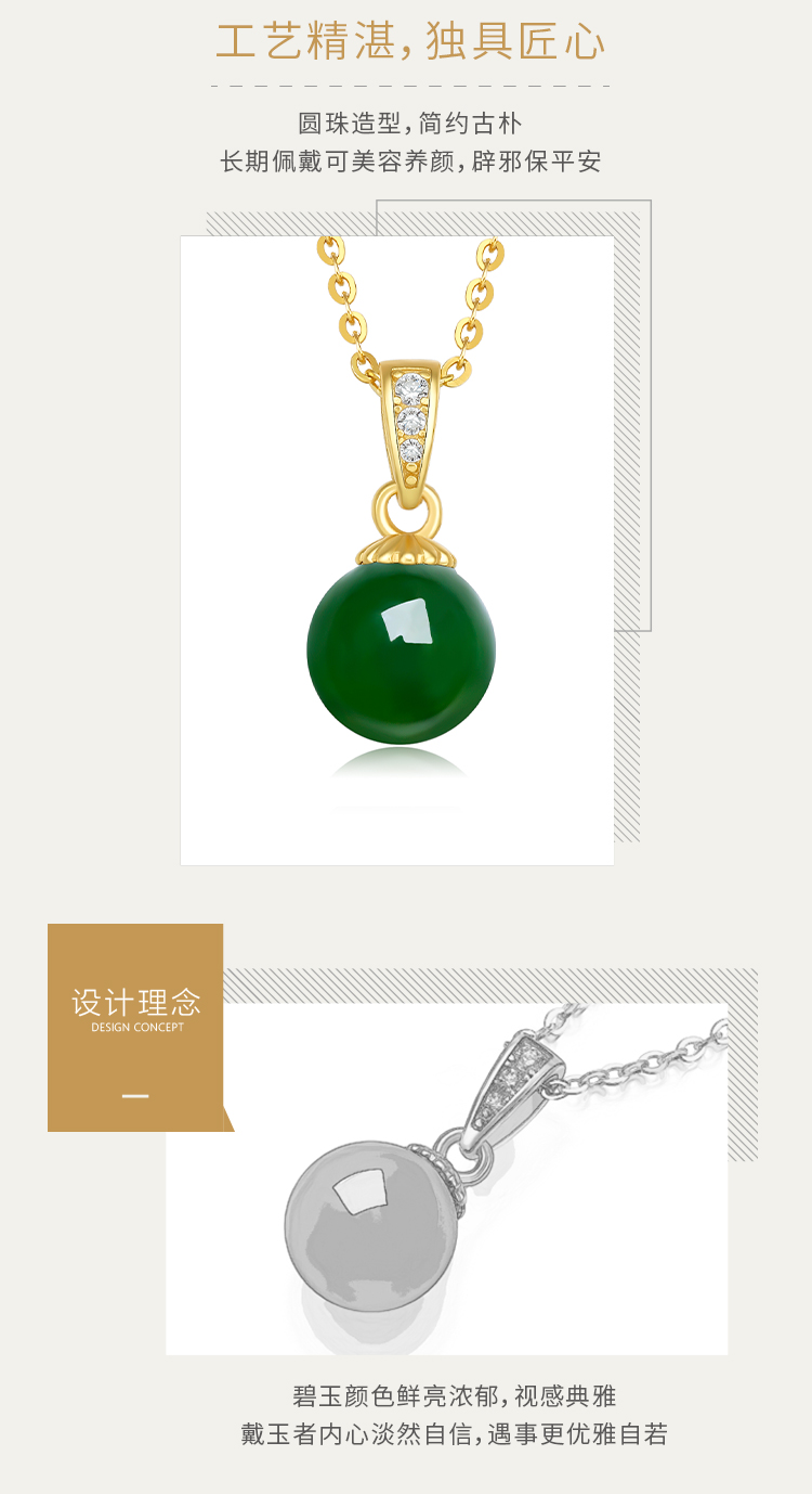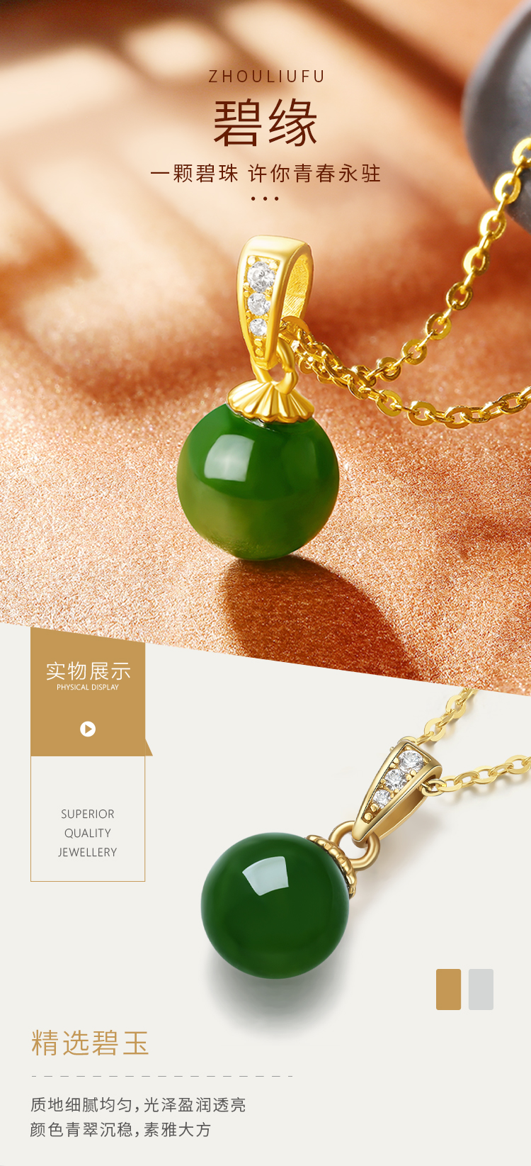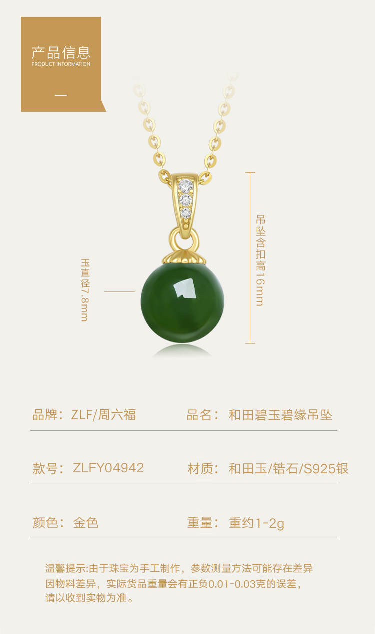 周六福S925银和田碧玉碧缘吊坠 ZLFY04942