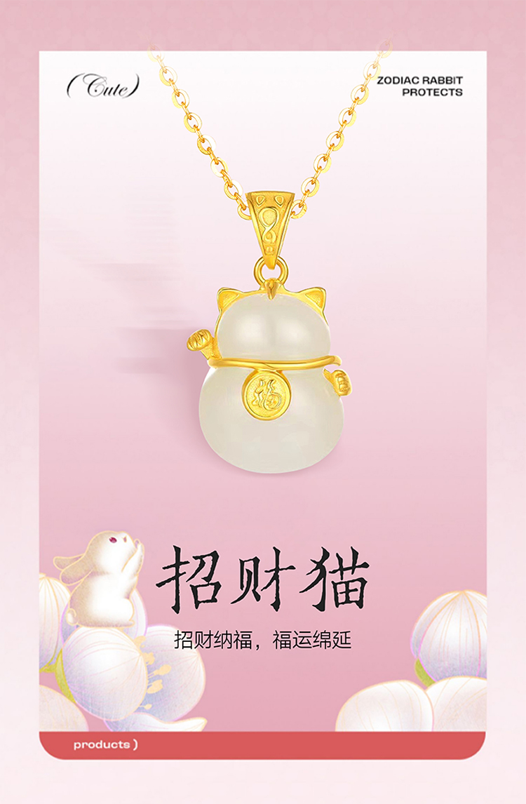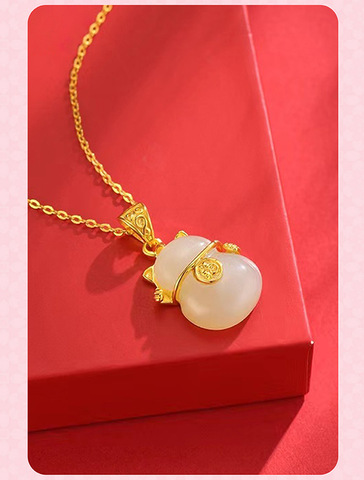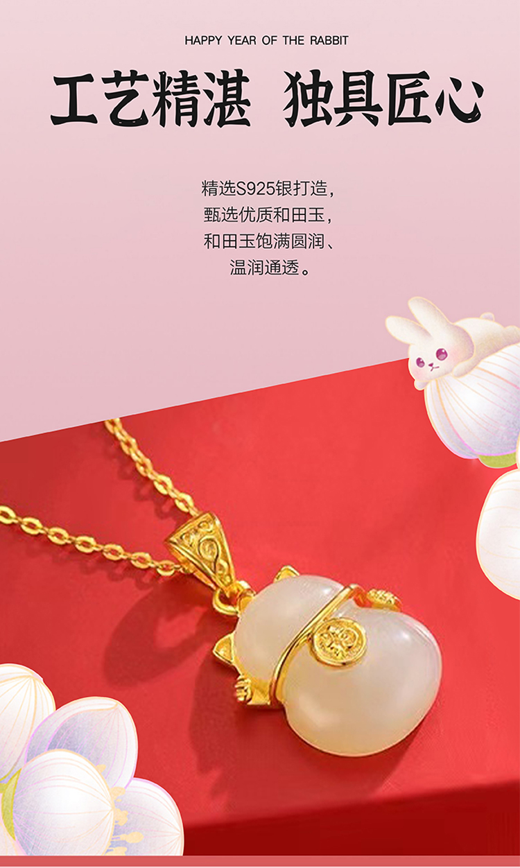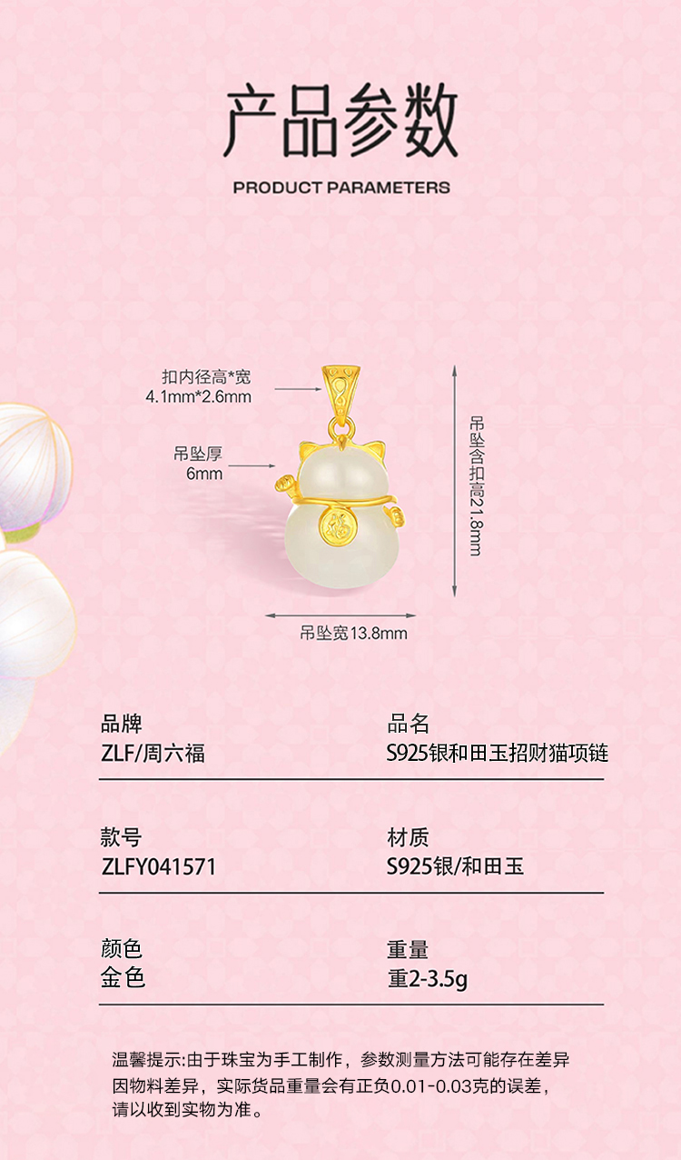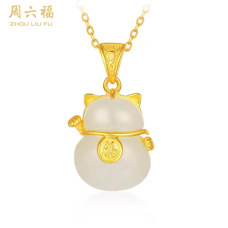 周六福S925银和田玉招财猫项链 ZLFY041571
