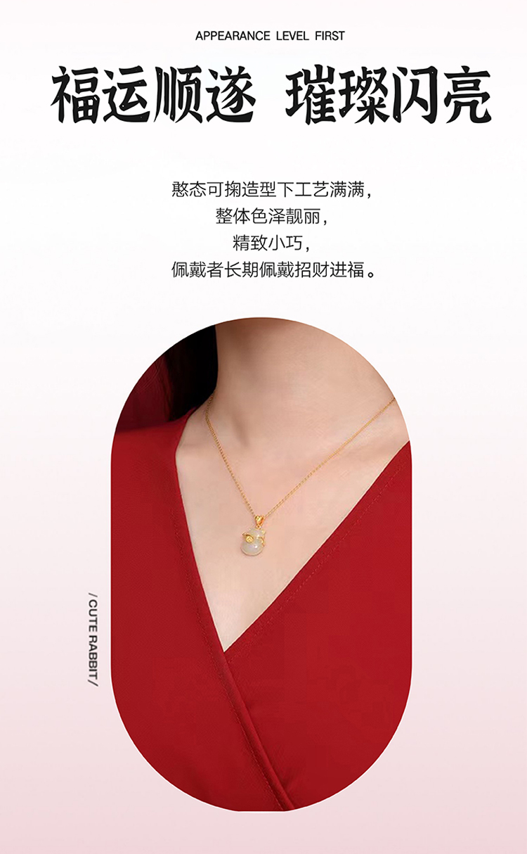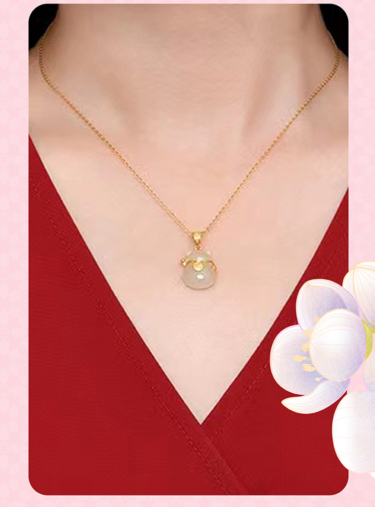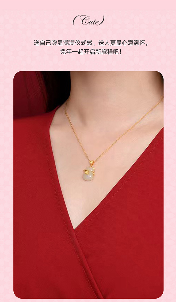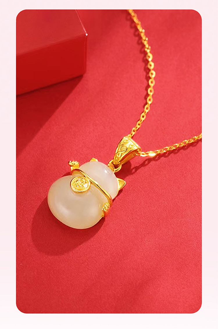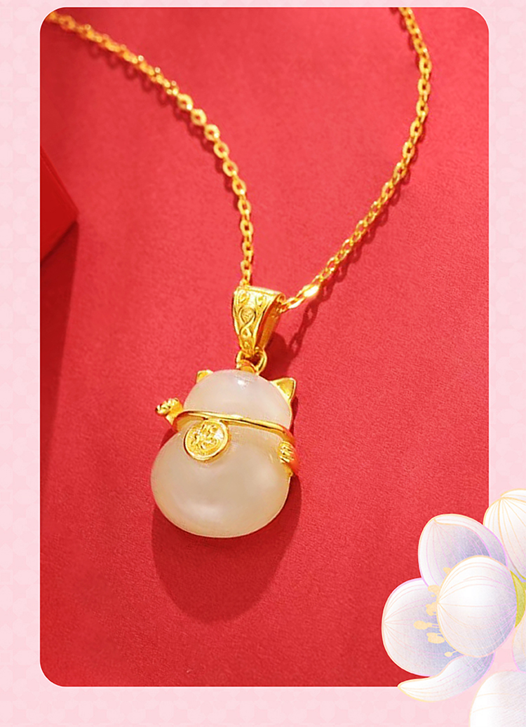 周六福S925银和田玉招财猫项链 ZLFY041571