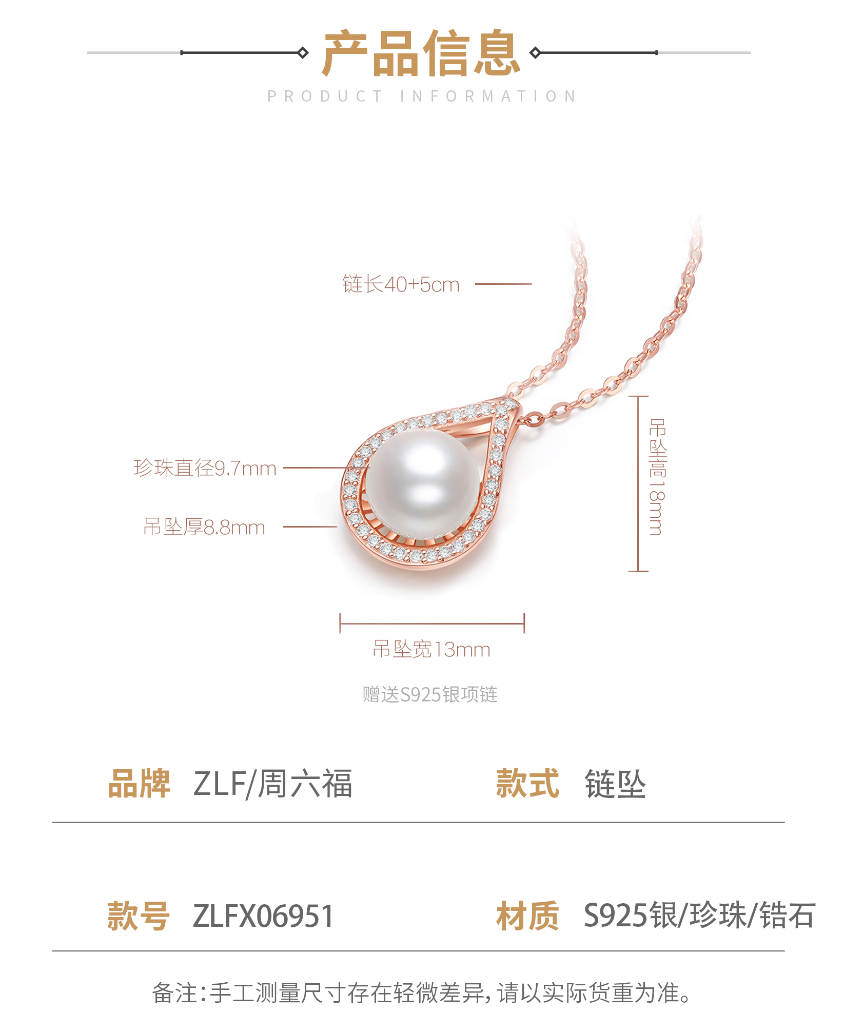 周六福S925银珍珠少女的眼泪套链 ZLFX06951