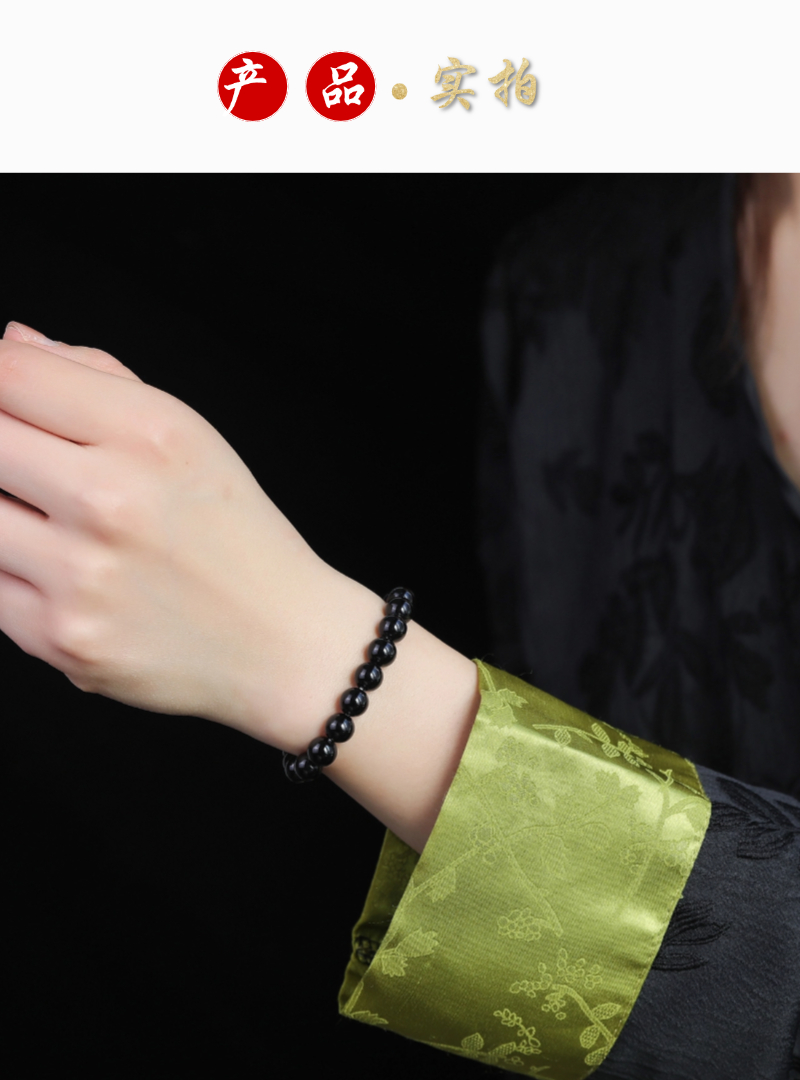 珩钻新中式墨韵暗夜黑玛瑙手串国潮手链8mm M06