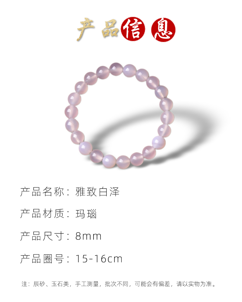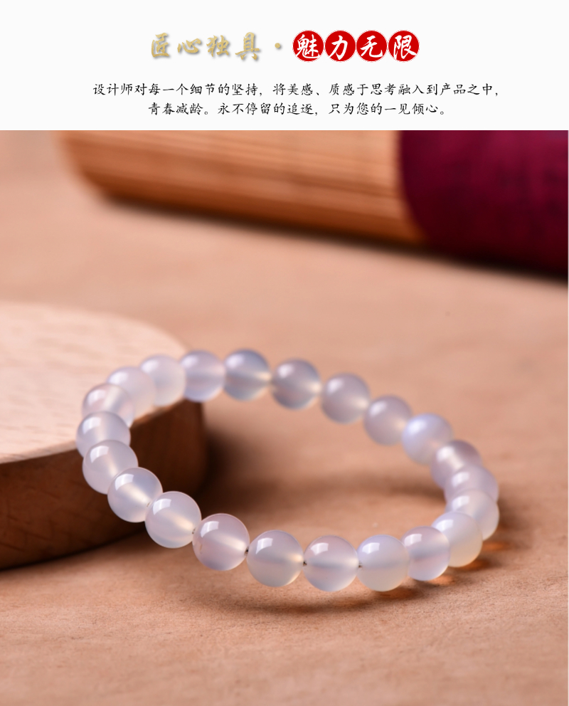 珩钻新中式雅致白泽白玛瑙手串国潮手链8mm M07