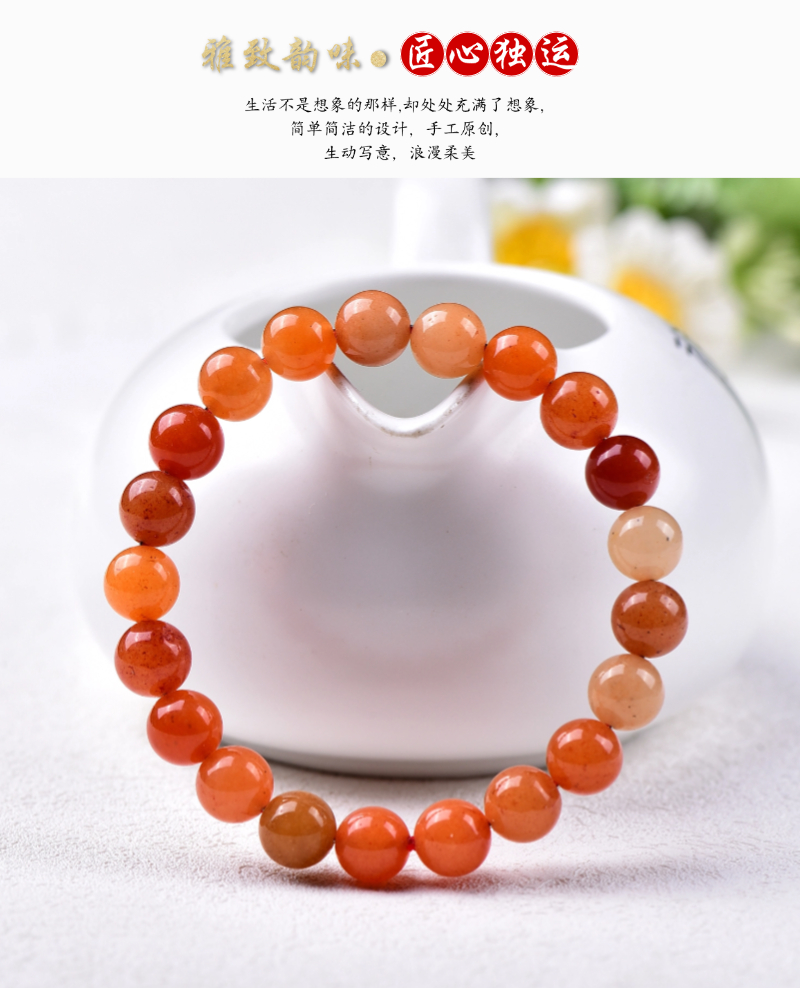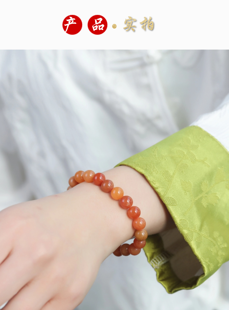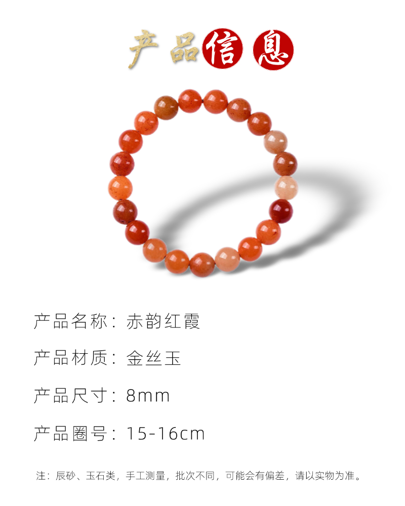 珩钻新中式赤韵红霞金丝玉手串国潮手链8mm JSY08