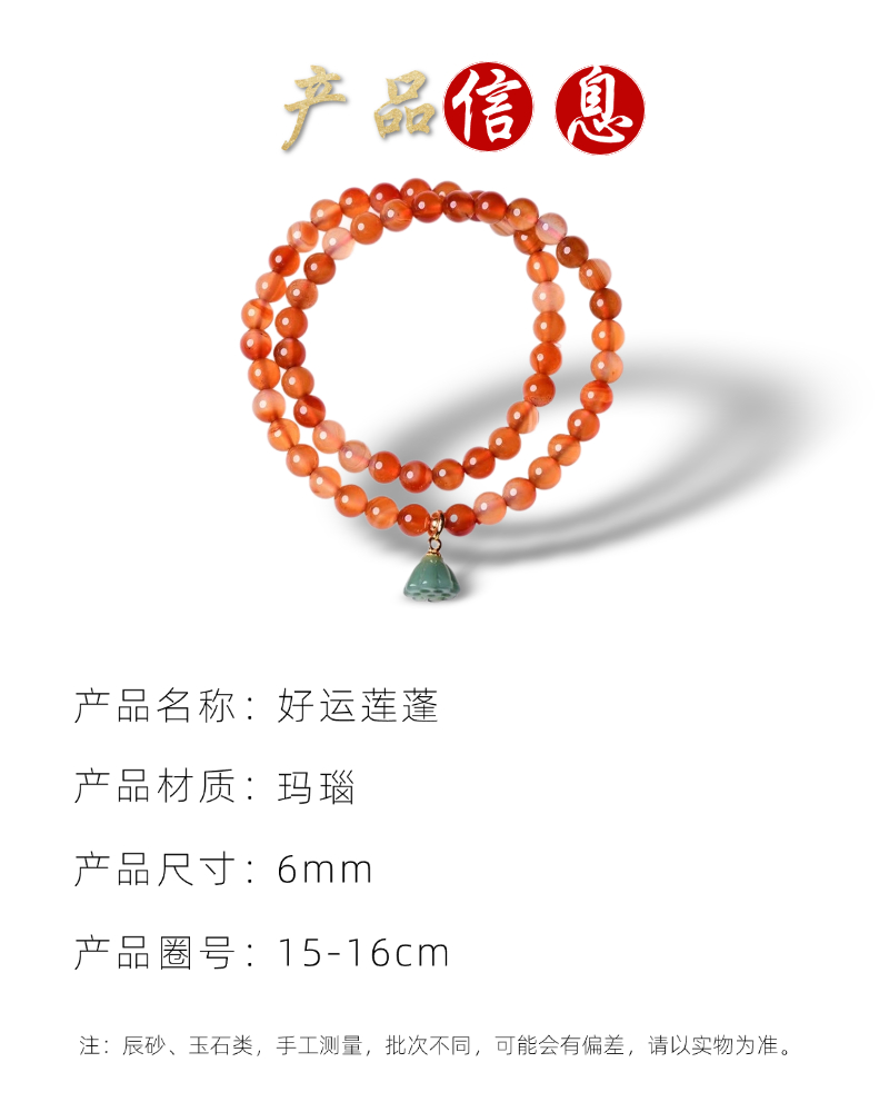 珩钻新中式国潮好运莲蓬手串国风手链6mm M16