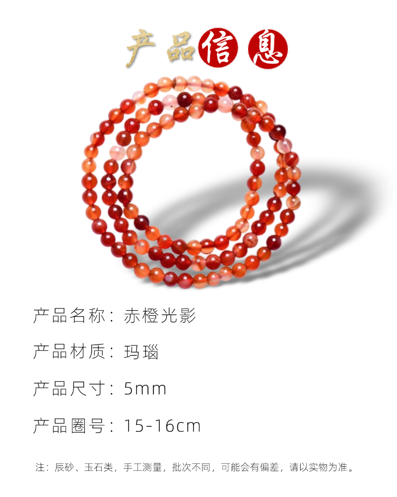 珩钻新中式国潮赤橙光影手串国风手链5mm M17
