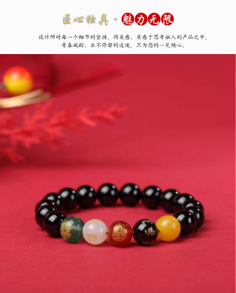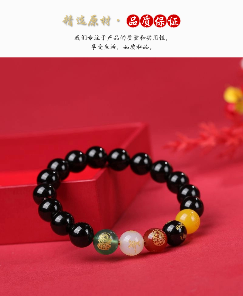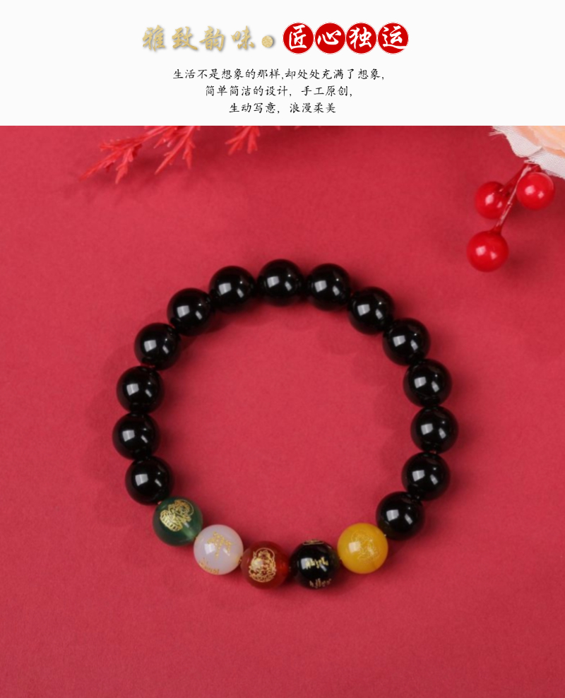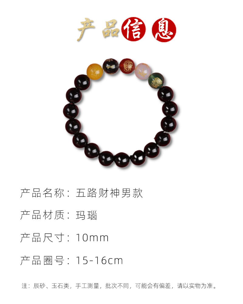 珩钻新中式五路财神男款黑玛瑙手串国潮手链10mm M10