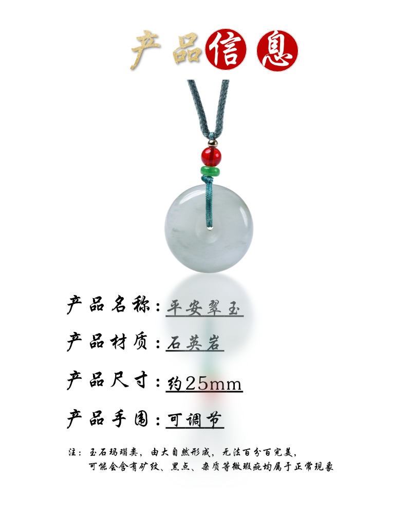 珩钻新中式国潮平安翠玉吊坠项链 T02