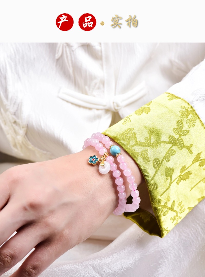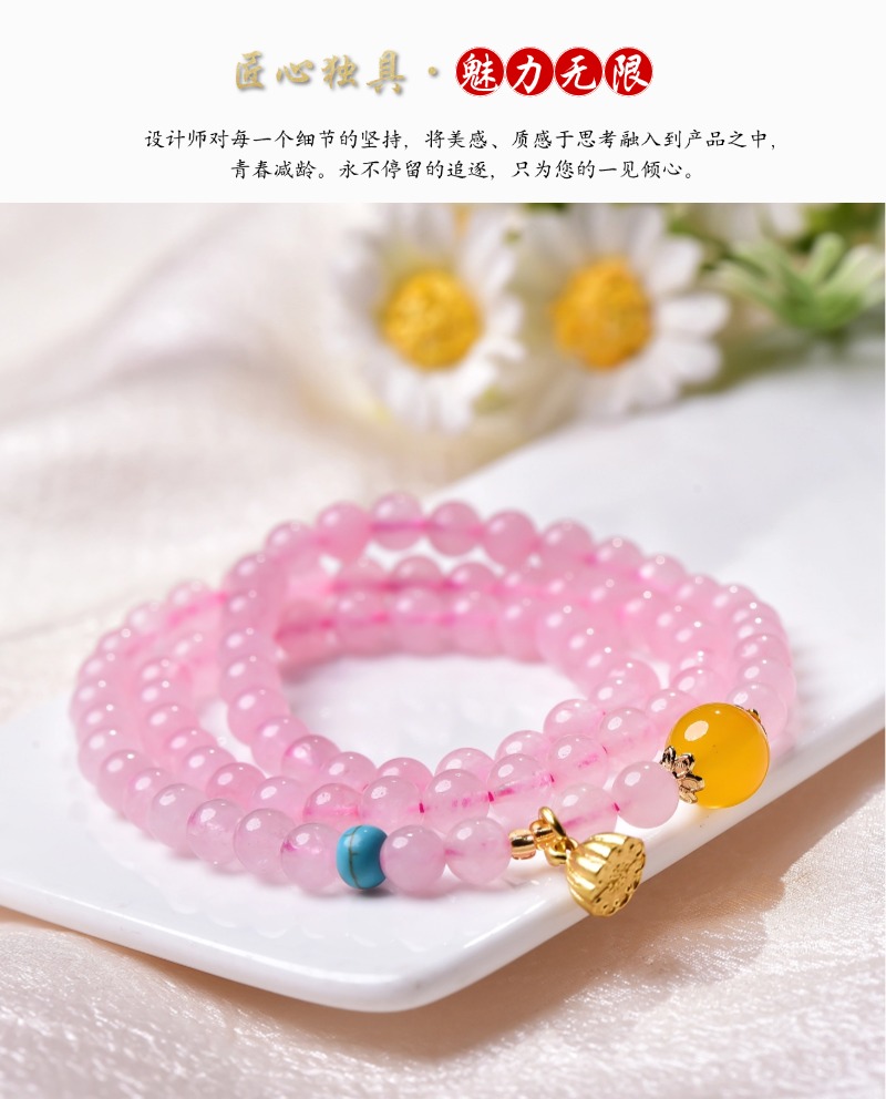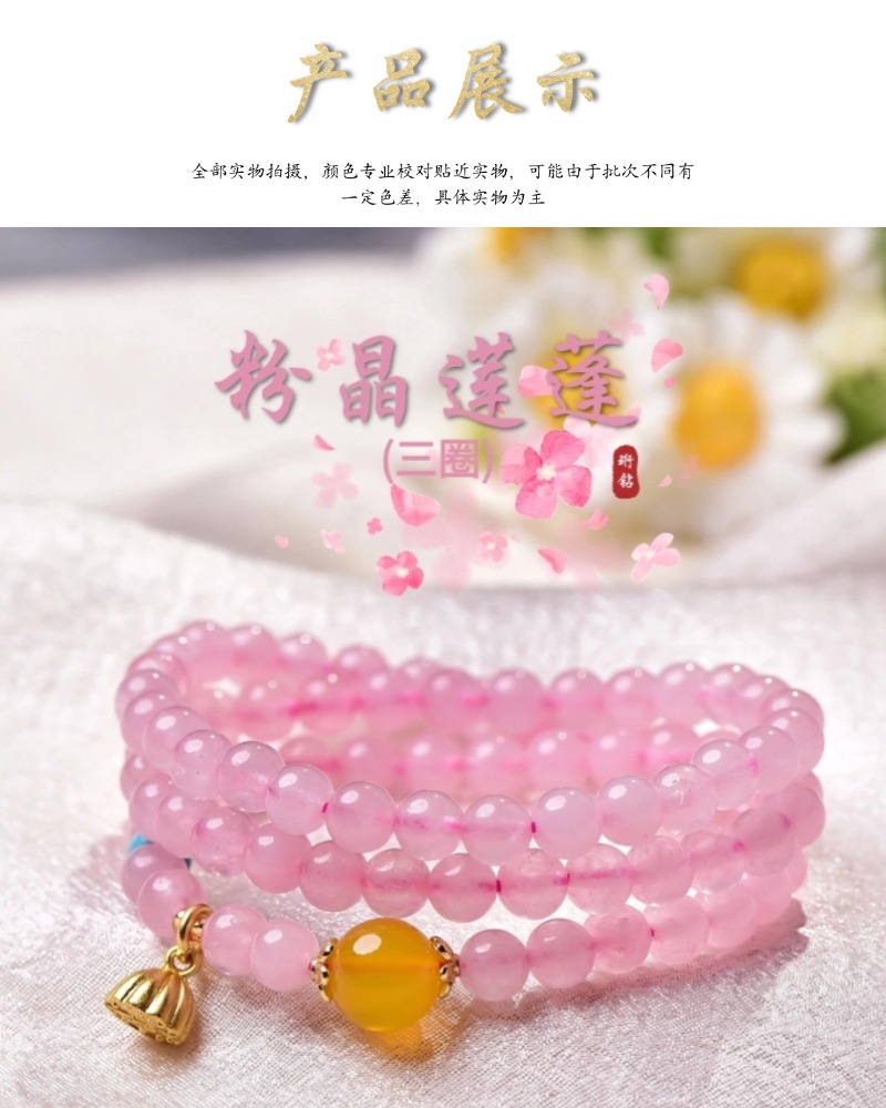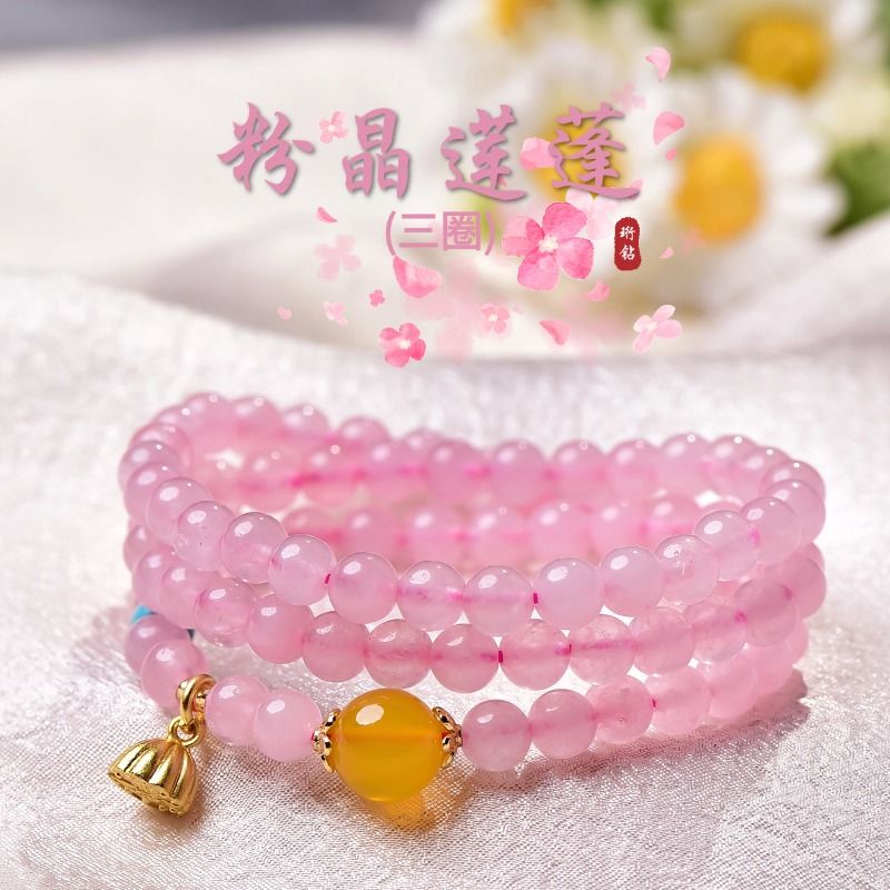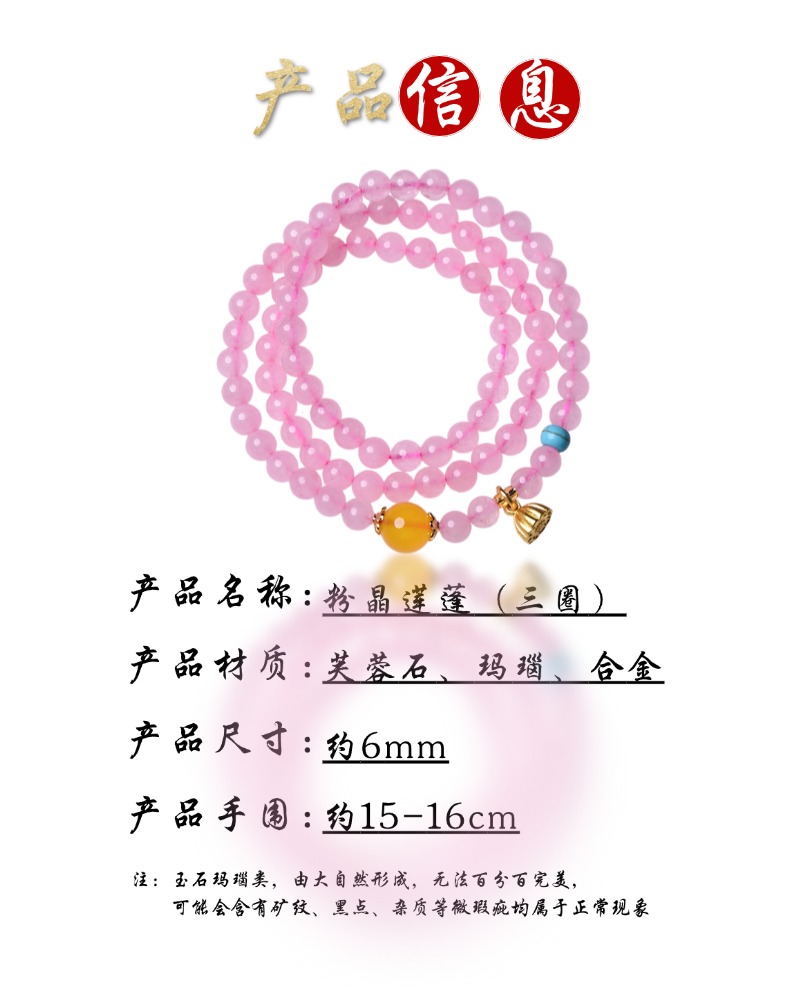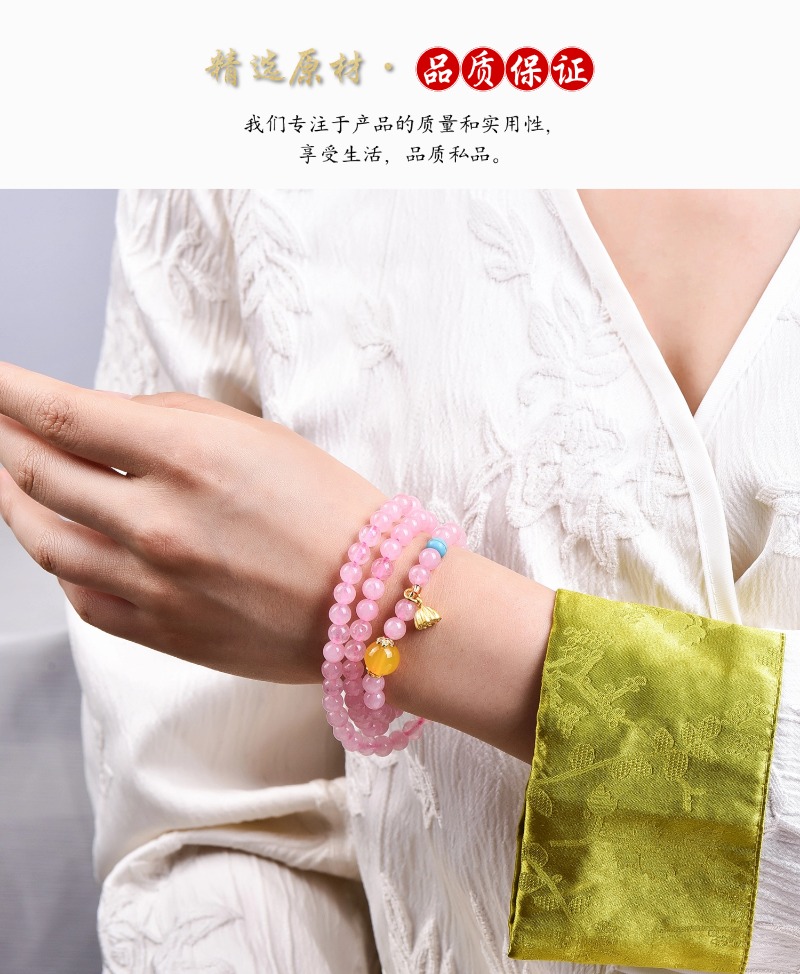 珩钻新中式国潮粉晶莲蓬(三圈)手串6mm M30