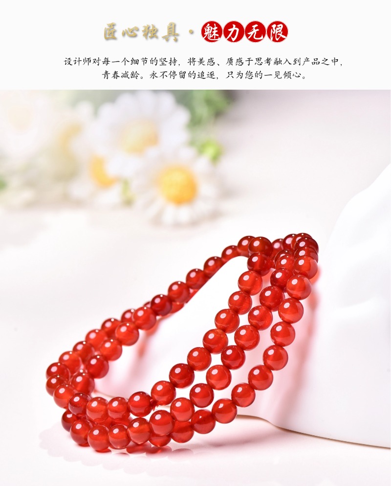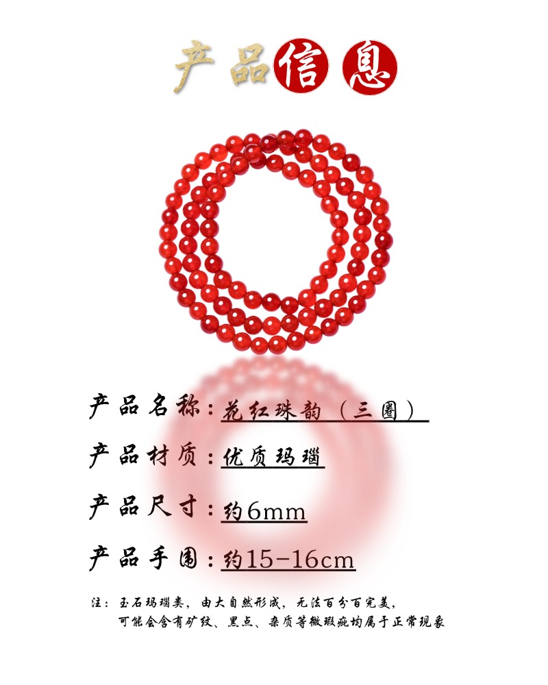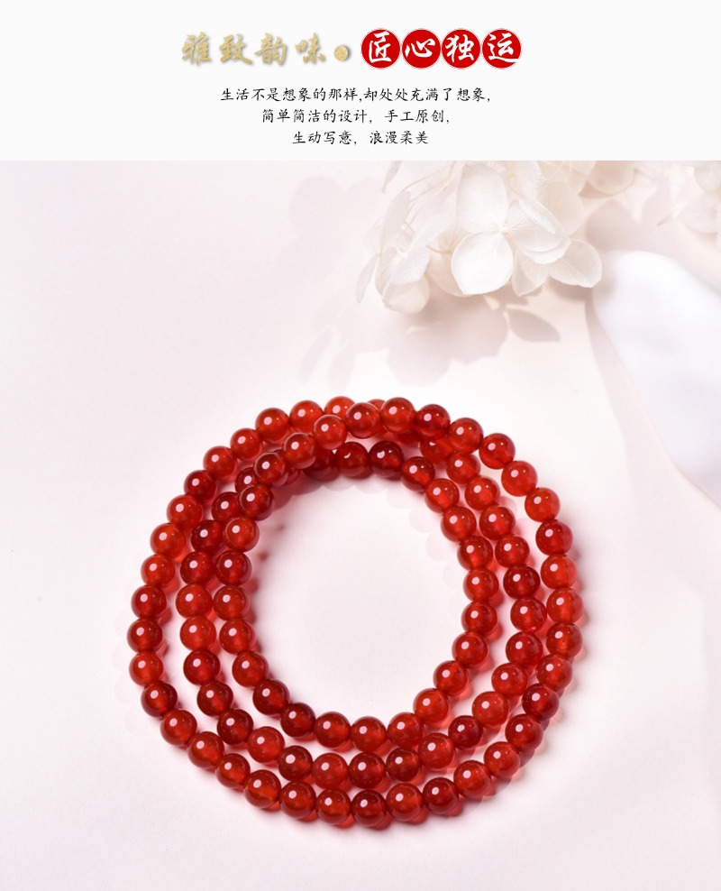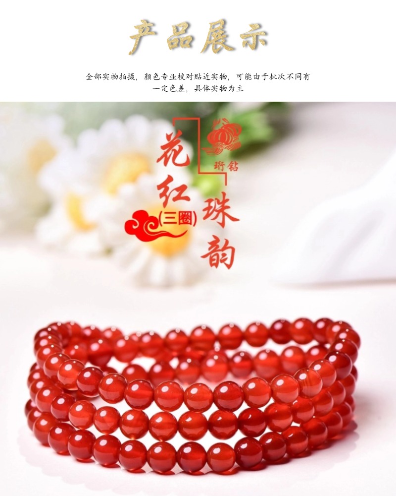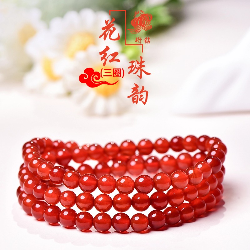 珩钻新中式国潮花红珠韵(三圈)手串6mm M34