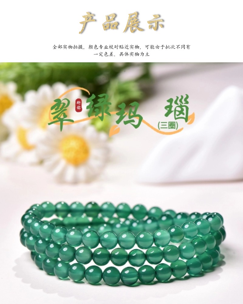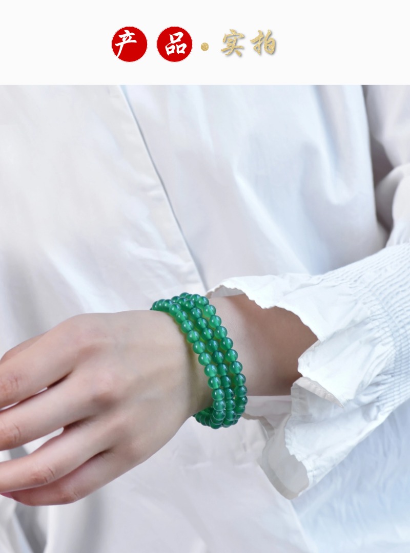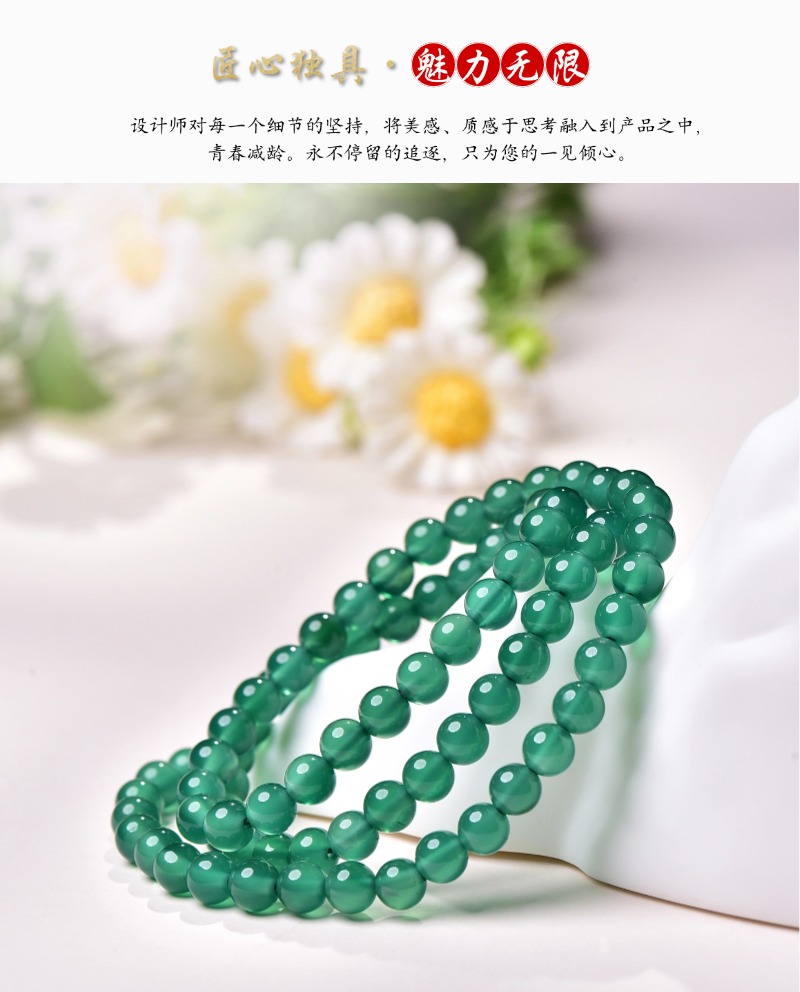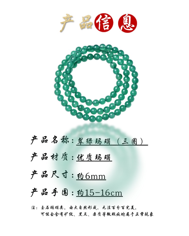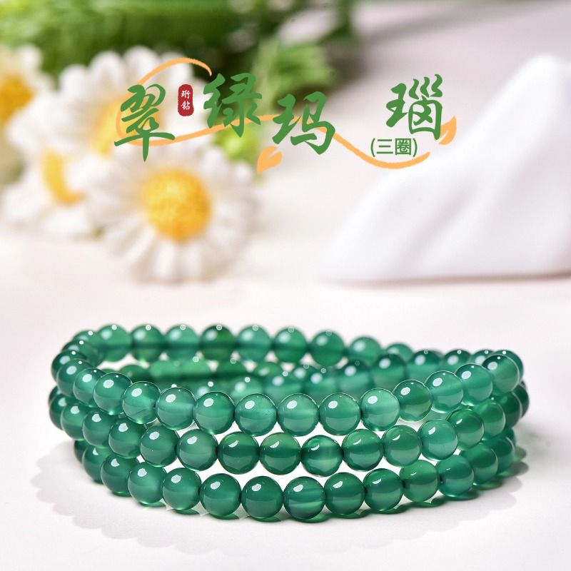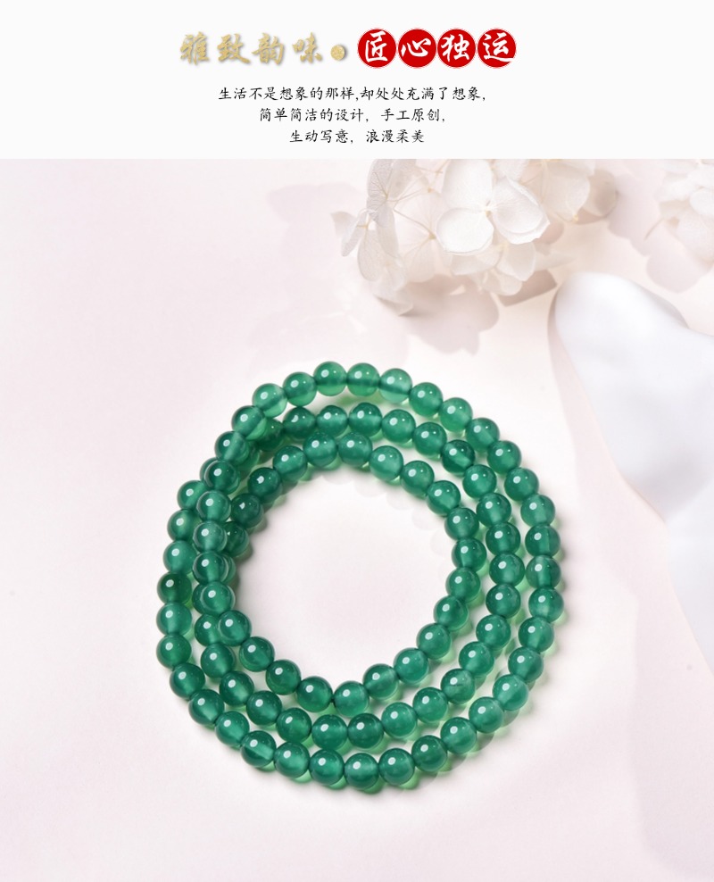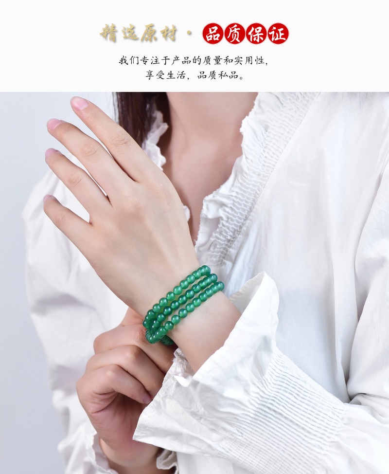 珩钻新中式国潮翠绿玛瑙(三圈)手串6mm M35