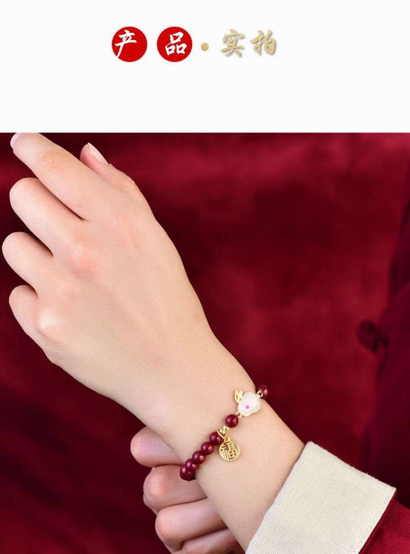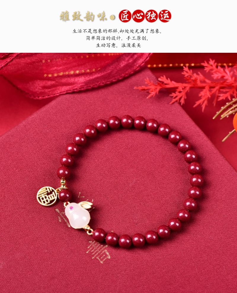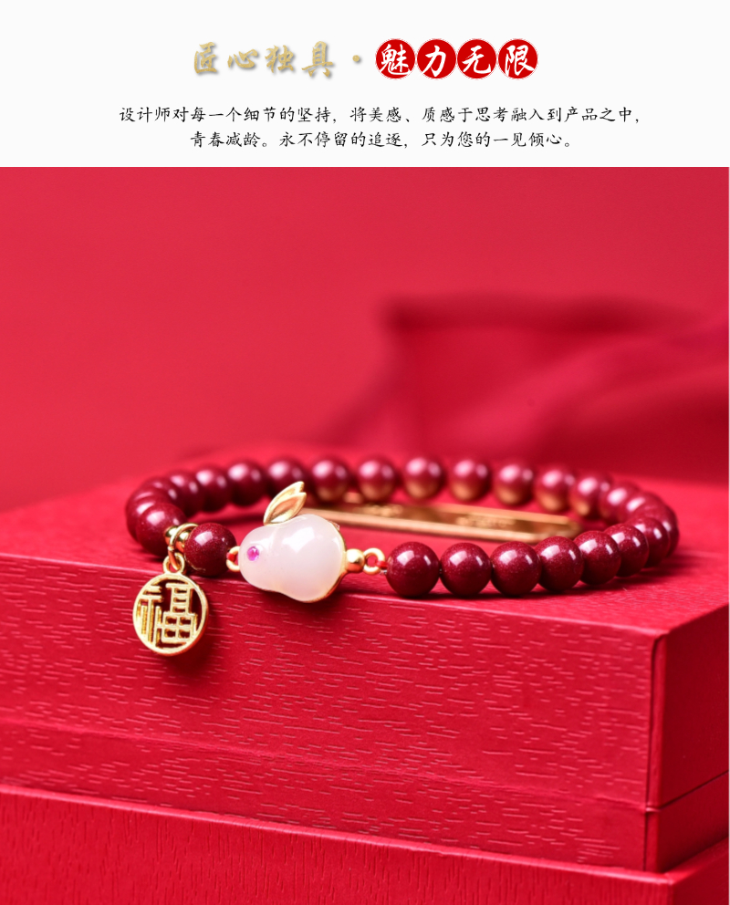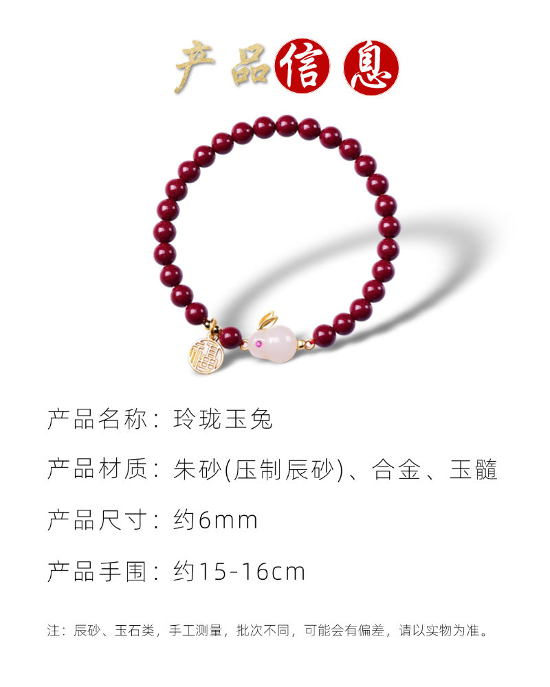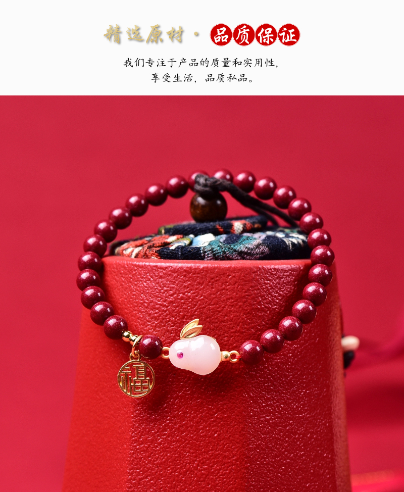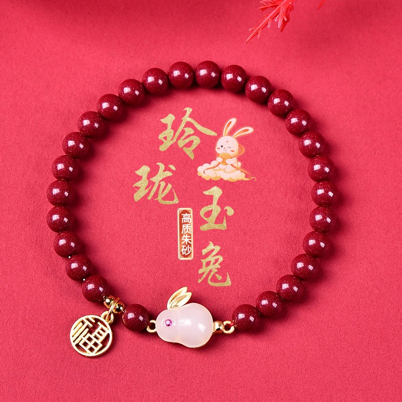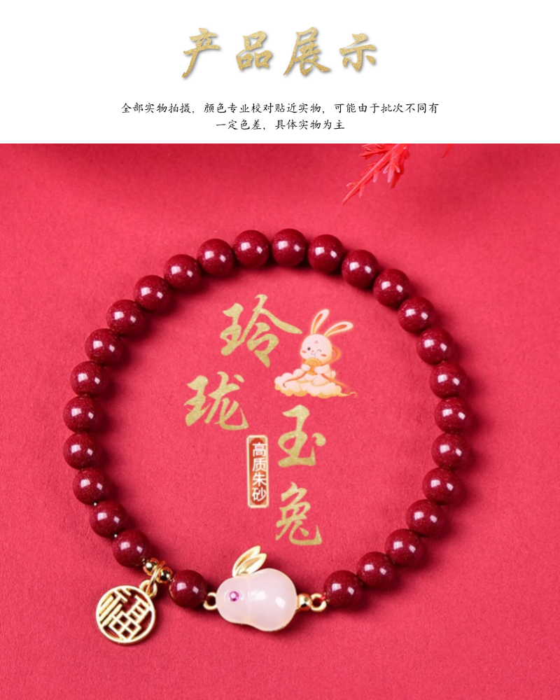 珩钻新中式国潮 朱砂玲珑玉兔手串6mm G18
