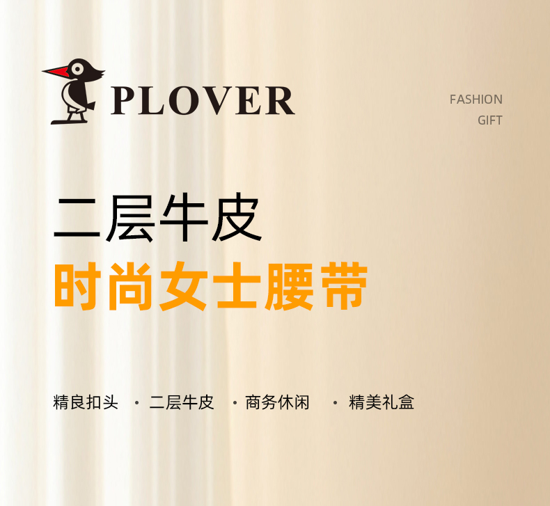 PLOVER香港啄木鸟女士真皮黑色腰带皮带GD00012-ZA-B2/红色腰带皮带GD00012-ZH-B2