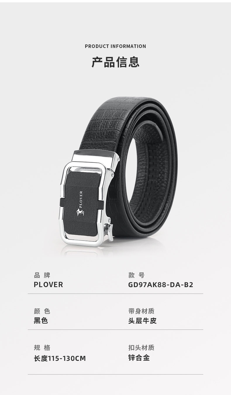 PLOVER香港啄木鸟头层牛皮腰带自动扣真皮皮带GD97AK88-DA-B2