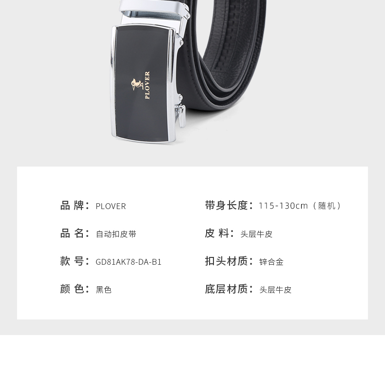 PLOVER香港啄木鸟真皮腰带头层牛皮皮带GD81AK78-DA-B1