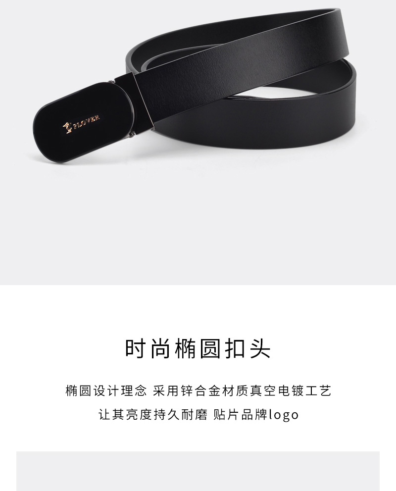 产品设计新颖,椭圆设计理念,采用锌合金材质真空电镀工艺让其亮度持久耐磨,贴片品牌LOGO工艺尽显高端,带身采用优质牛皮,油边工艺更加耐用,板扣带身,男女可用,中性款式。