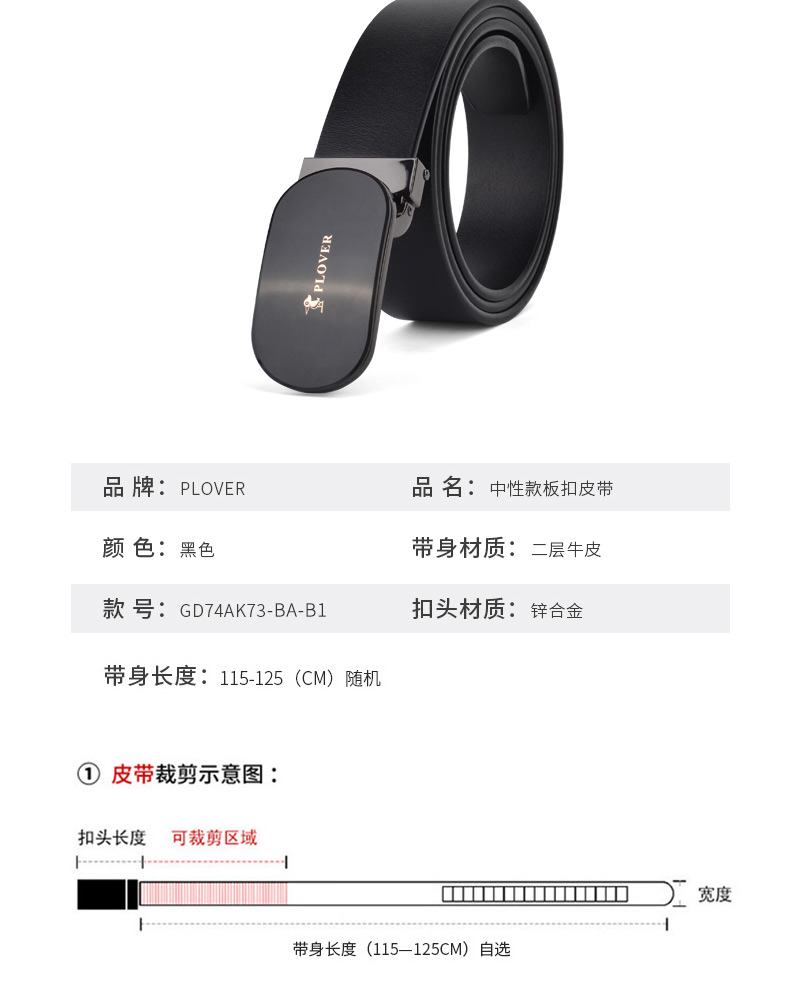 PLOVER香港啄木鸟真皮腰带中性款板扣皮带GD74AK73-BA-B1