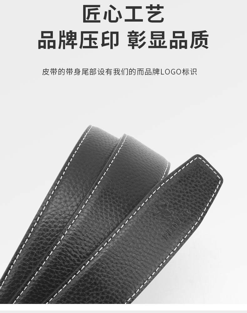 扣头采用锌合金真空电镀工艺,双D设计,新颖,带身精选最优质的头层牛皮,纹理精致细腻!外观细密柔软。走线工整,无缝连接,构想更增添立体感。
