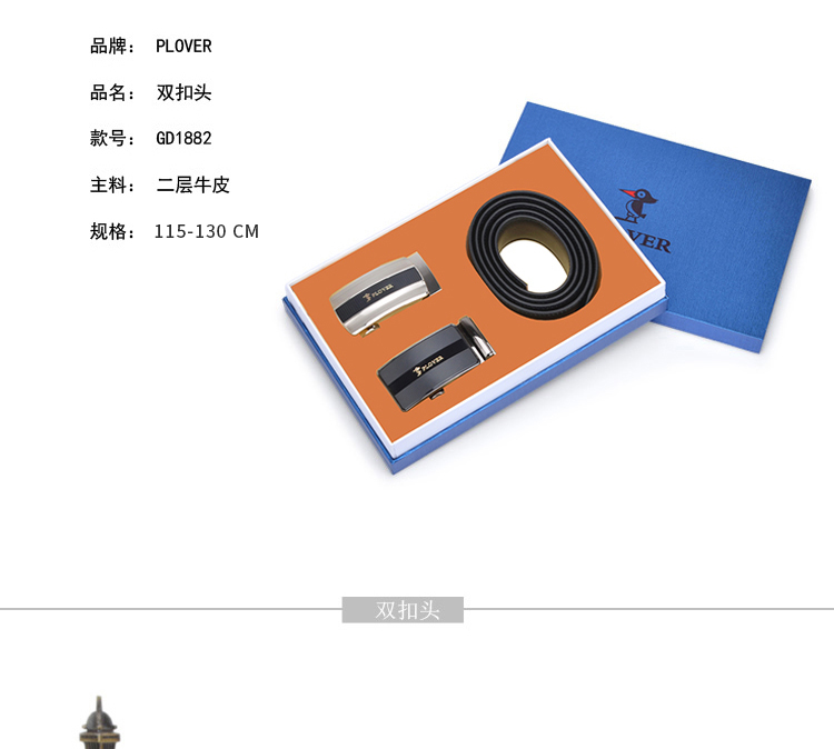 PLOVER香港啄木鸟真皮男士双扣皮带礼盒GD1882