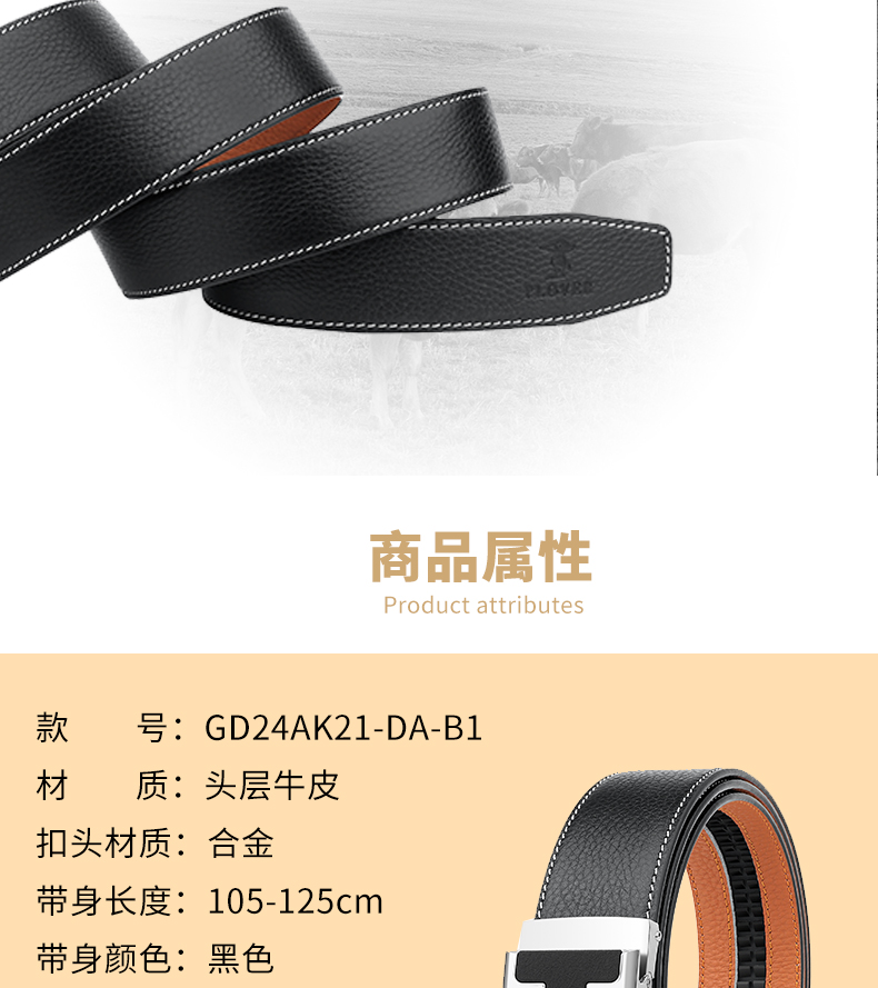 PLOVER香港啄木鸟真皮腰带头层牛皮皮带GD24AK21-DA-B1