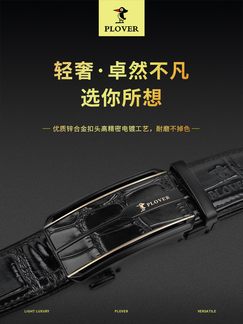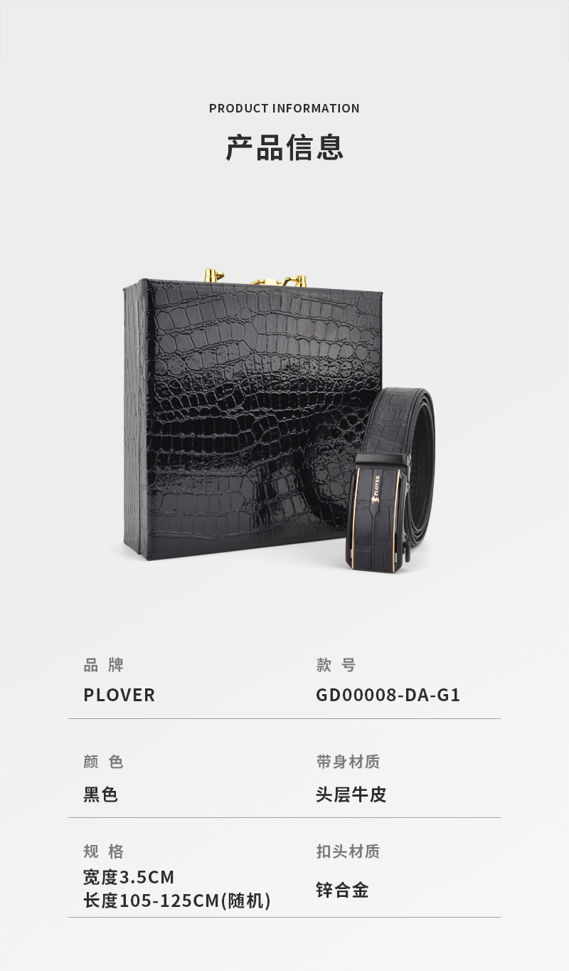 PLOVER香港啄木鸟高端头层牛皮鳄鱼纹皮带真皮腰带礼盒GD00008-DA-G1