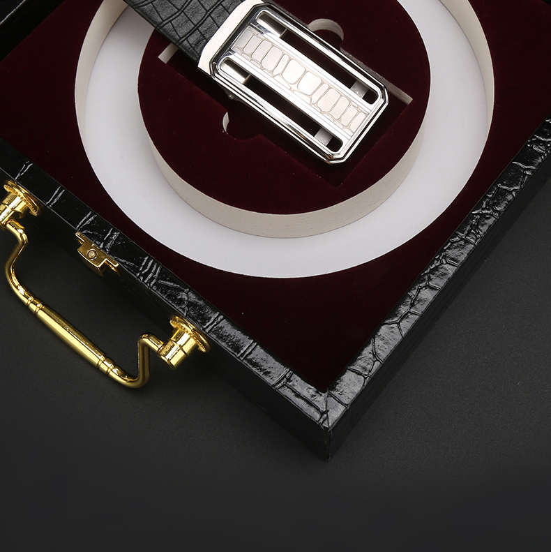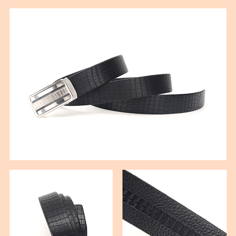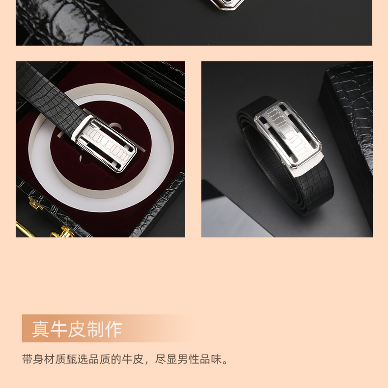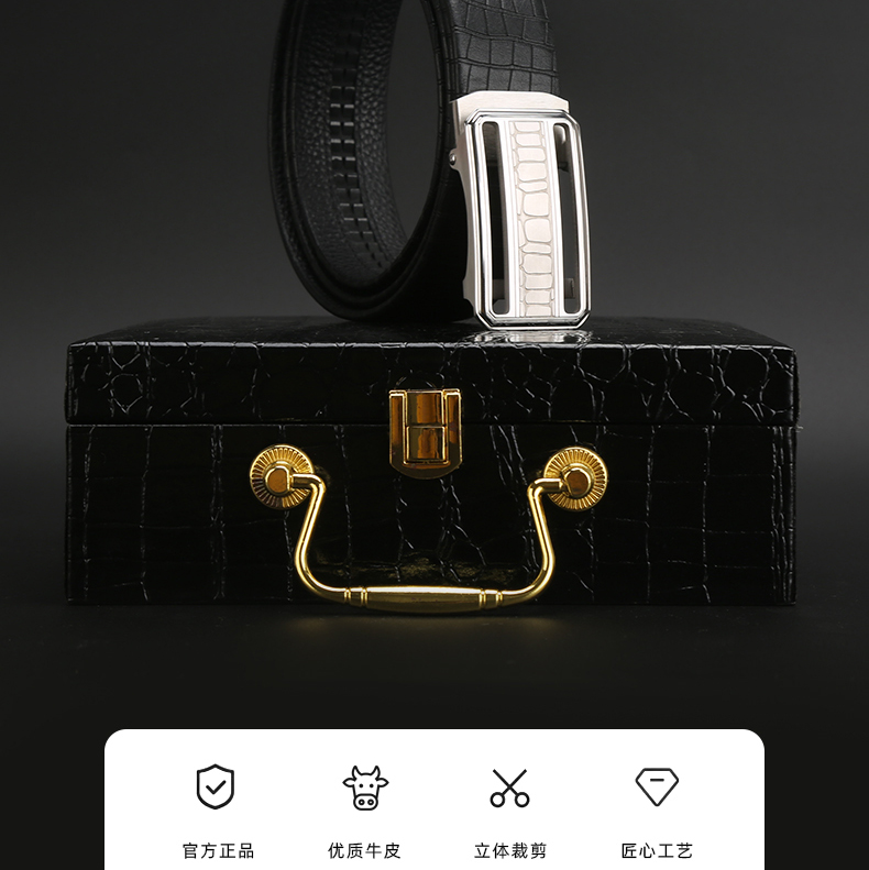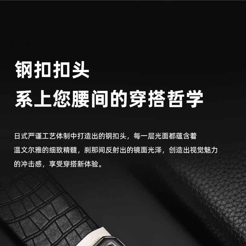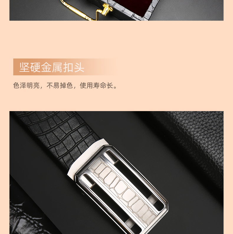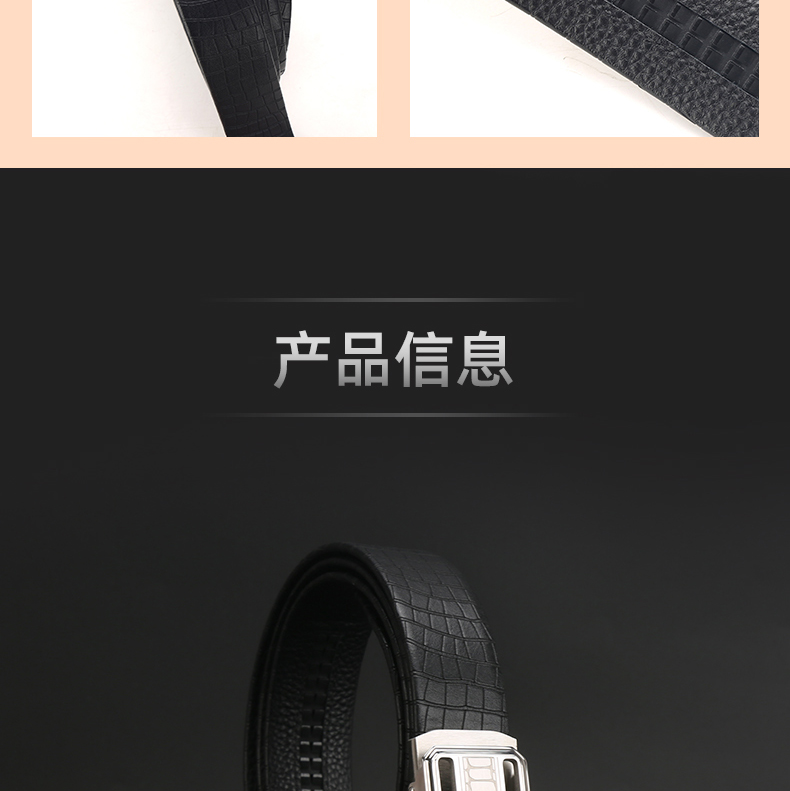 设计新颖,钢扣自动扣,带身正面来用头层软牛皮,激光小鳄鱼纹,无缝无线做法,显档次,-“带”腰间,爱不释手