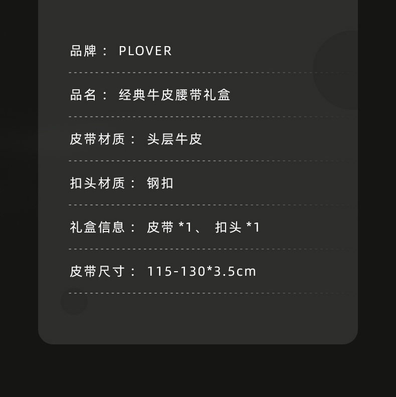 PLOVER香港啄木鸟头层牛皮皮带真皮腰带礼盒GD99AM319-DA-G1