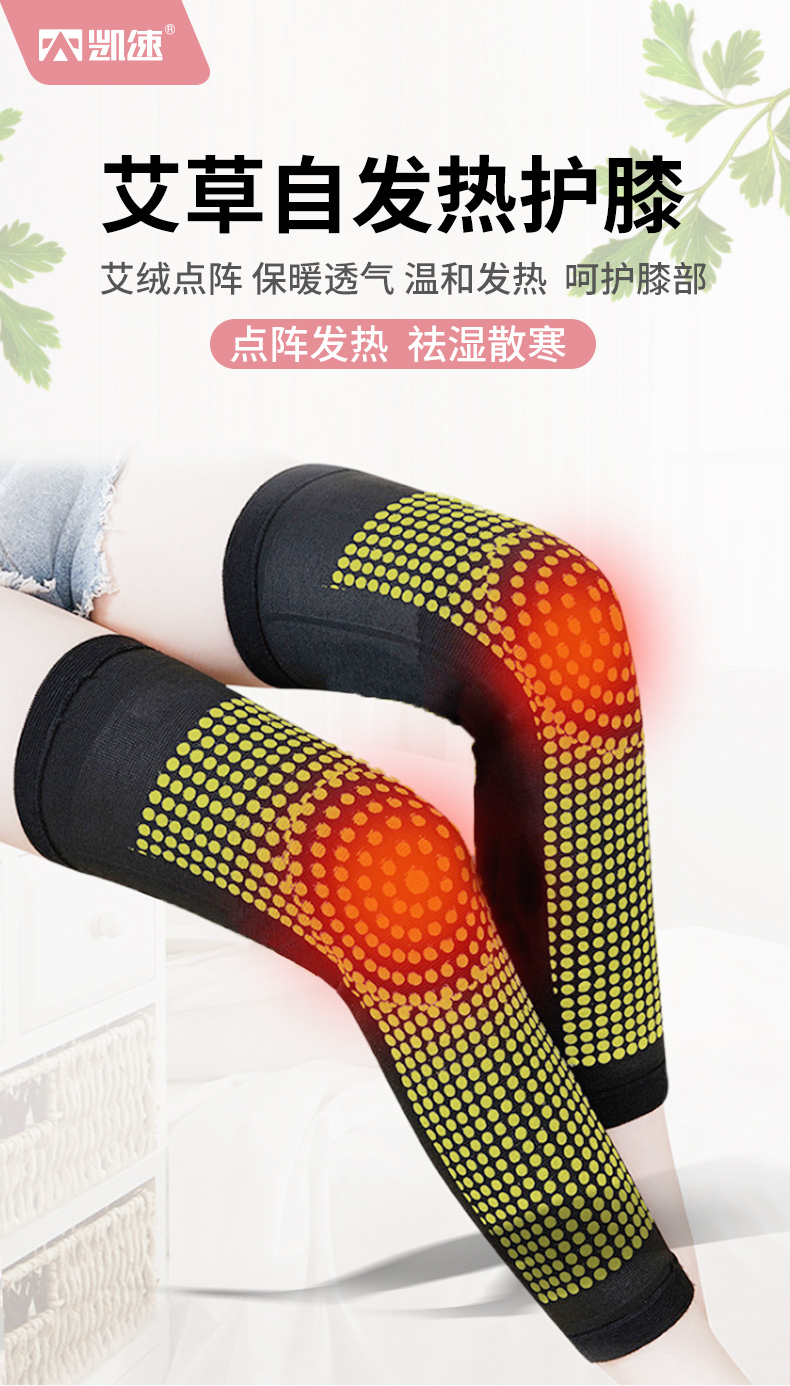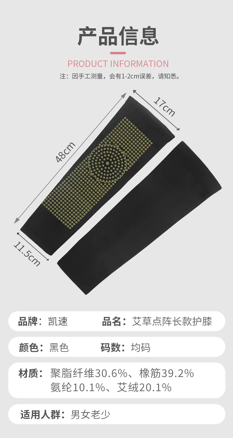 凯速艾草双面自发热点阵长款护膝黑色 KP10