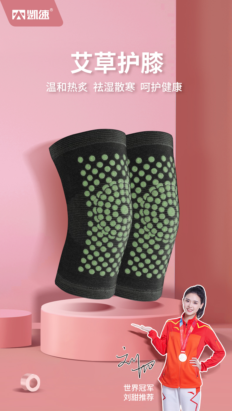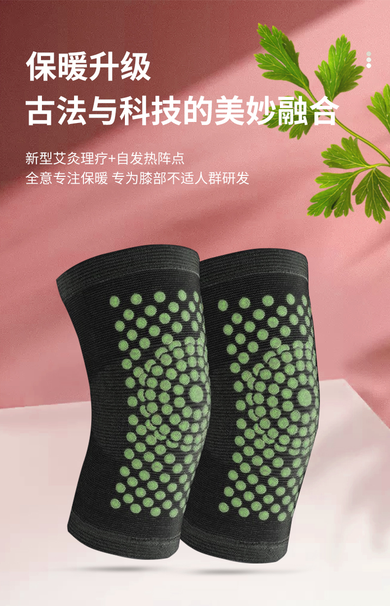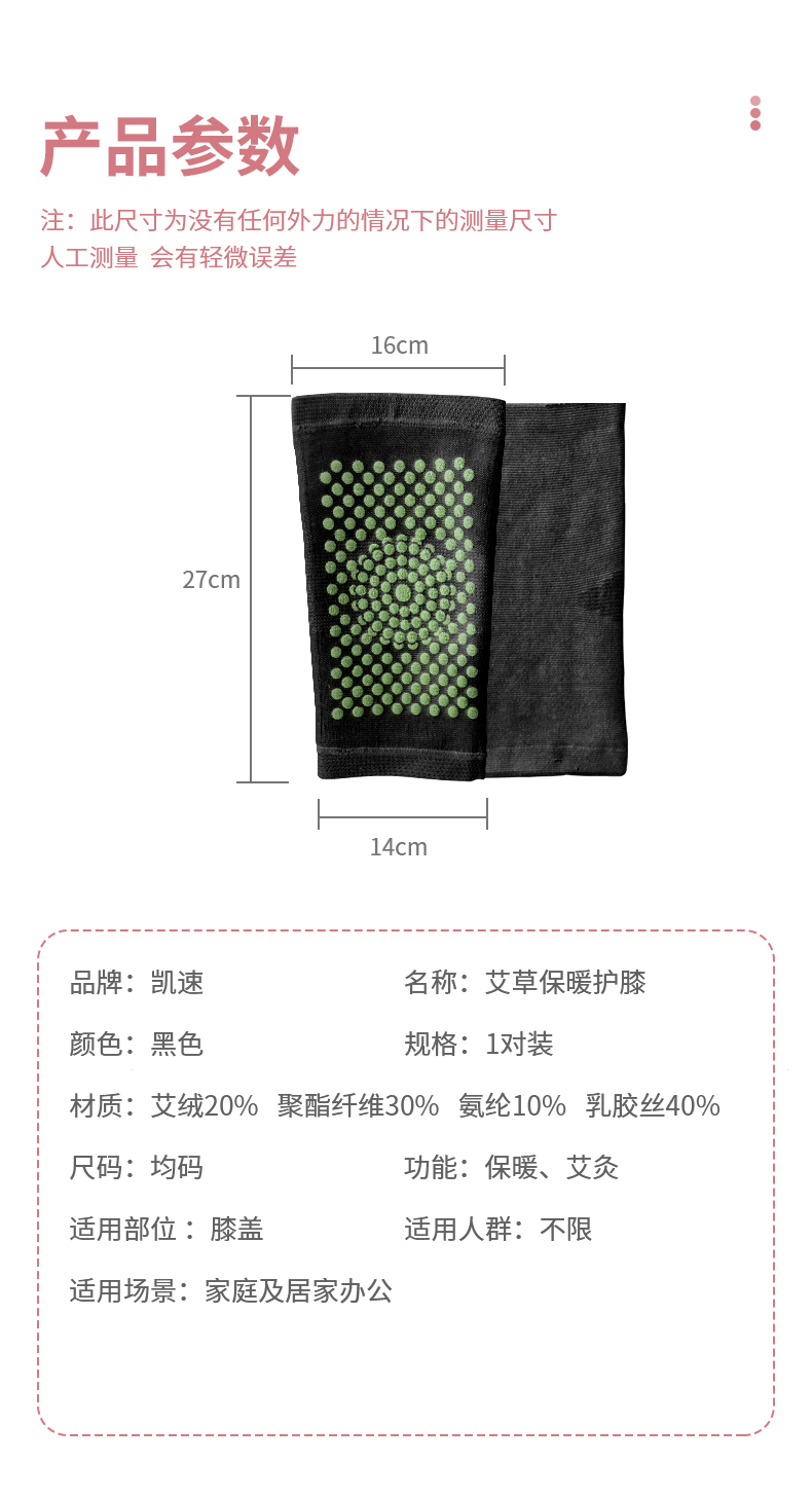 凯速艾草自发热点阵护膝黑色-两双装(4只)KP15