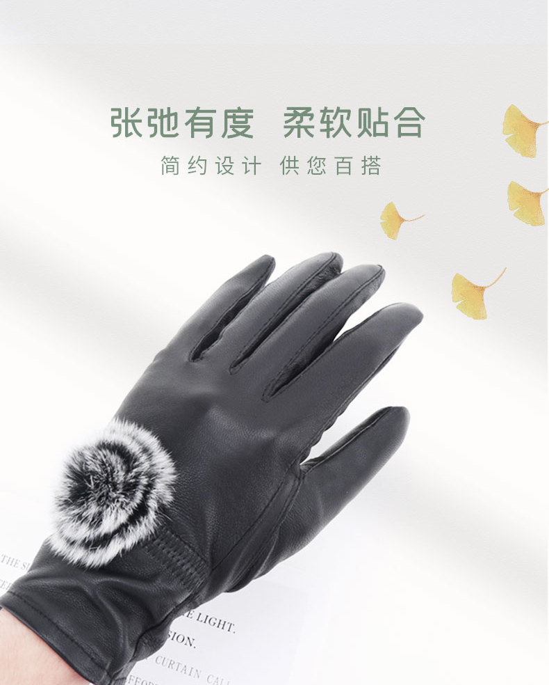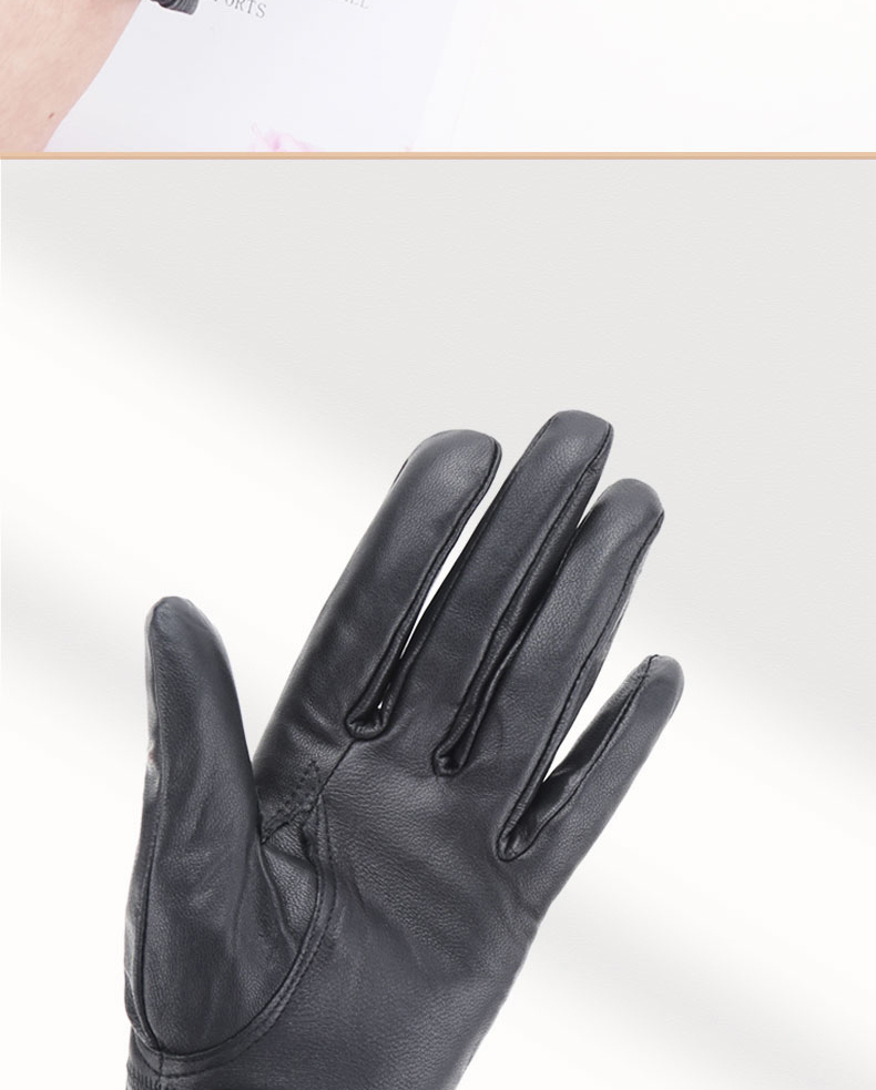 手套的面料选用优质柔软的羊皮,触感柔软顺滑。加绒密度更强更细密,有效抵挡寒风,保暖更胜一筹。款式新颖,做工精美,贴合手部的剪裁,这样会显得手指纤长,不臃肿。没过多的装饰,简约大方,自带高贵感!---不可触屏