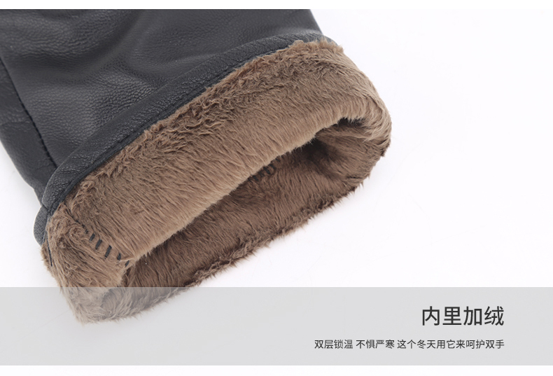 手套的面料选用优质柔软的羊皮,触感柔软顺滑。加绒密度更强更细密,有效抵挡寒风,保暖更胜一筹。款式新颖,做工精美,款式简洁大方!---不可触屏