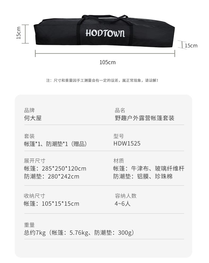 何大屋野趣户外露营帐篷套装HDW1525 3.8女神节 户外露营欢乐礼