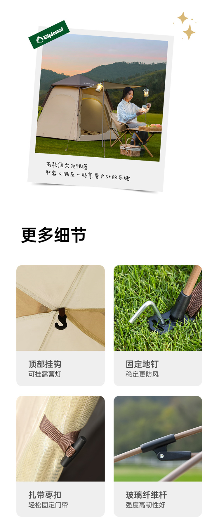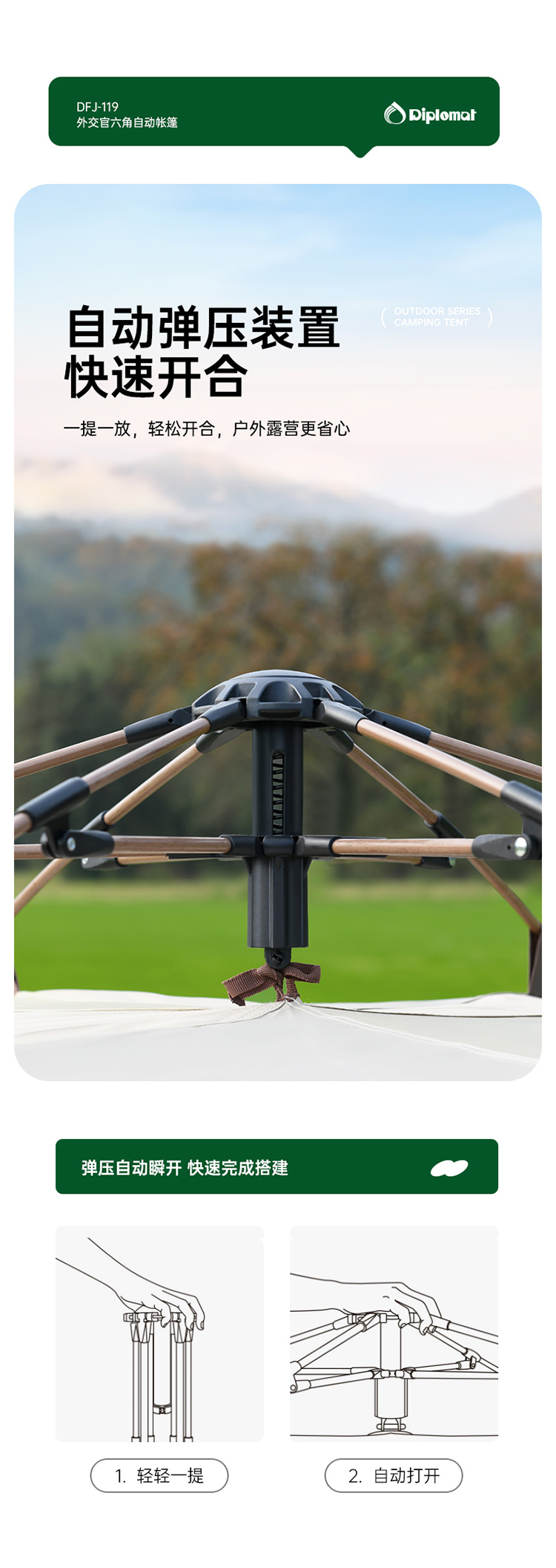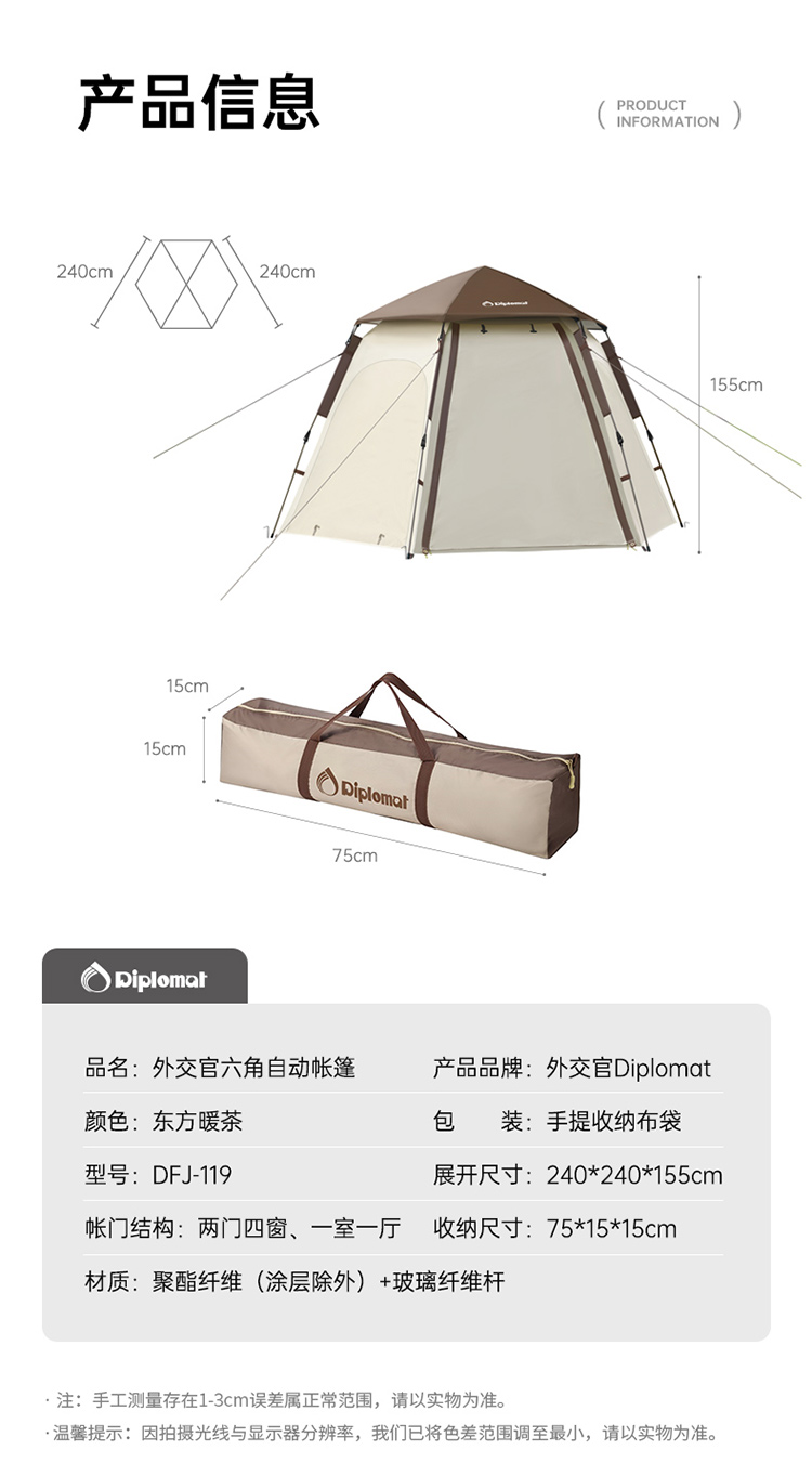 外交官六角自动帐篷-东方暖茶DFJ-119
