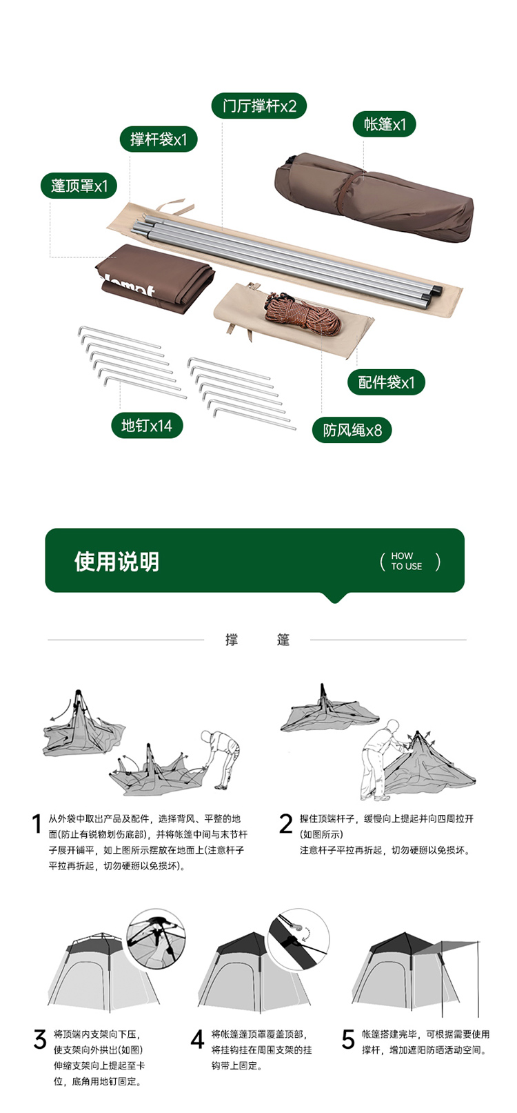 产品尺寸:240×240×155cm 收纳尺寸:75×15×15cm