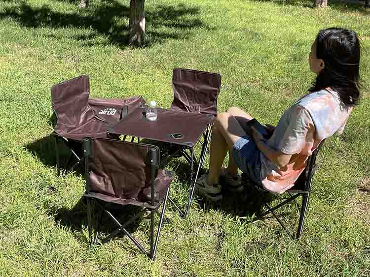 3:折叠桌、椅钢管表面经过防潮处理、可避免生锈、野外使用更安全。
