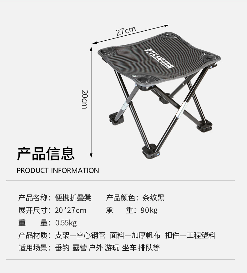 凯速可折叠户外马扎小凳子(配收纳袋)条纹黑HG35