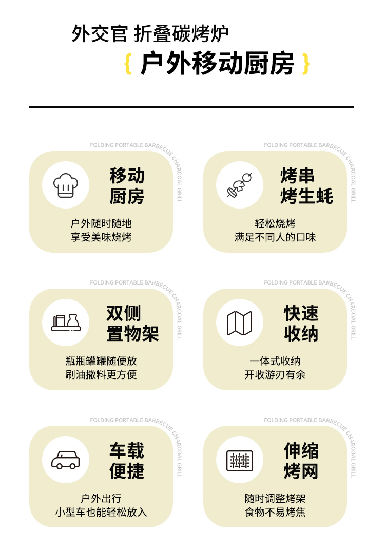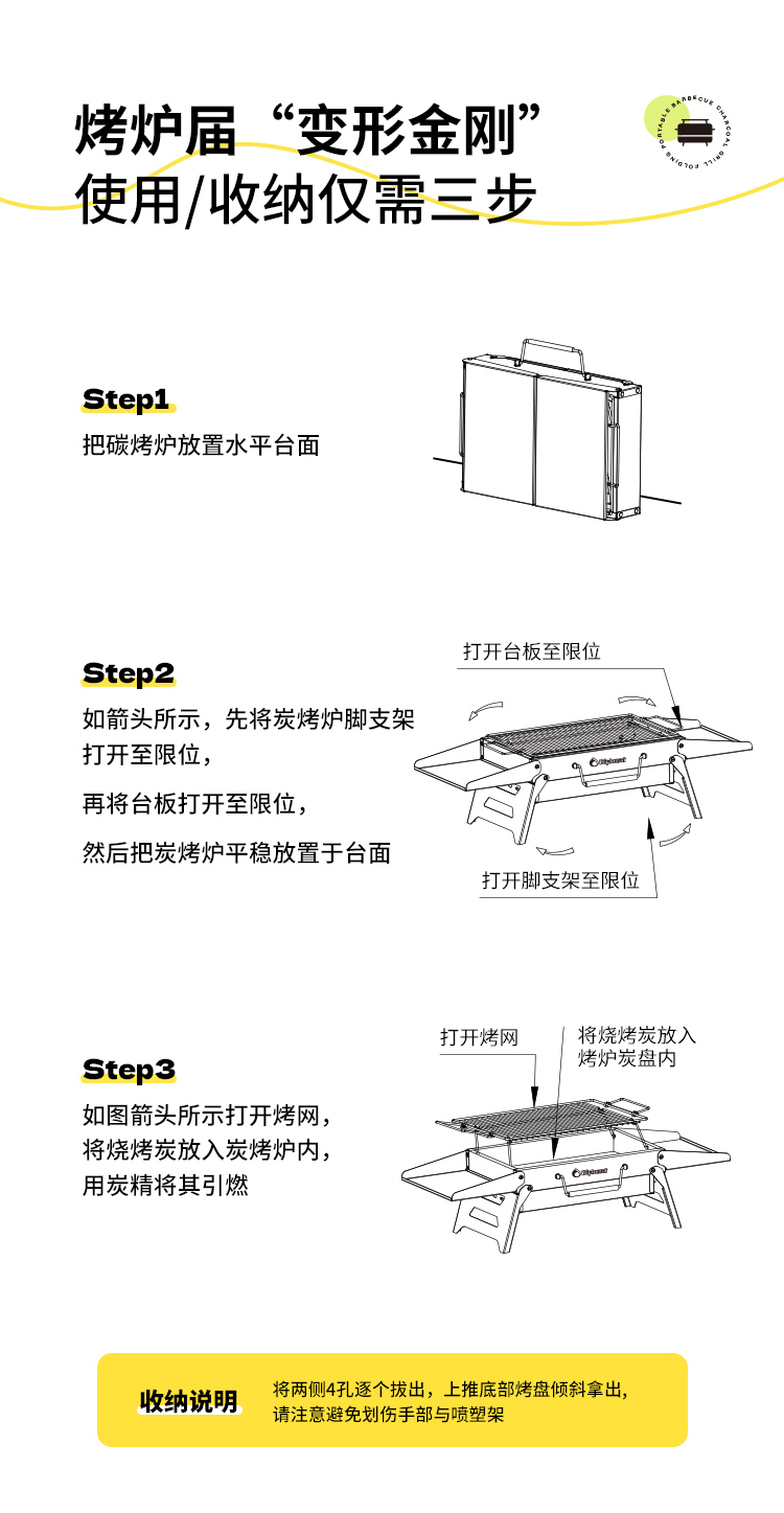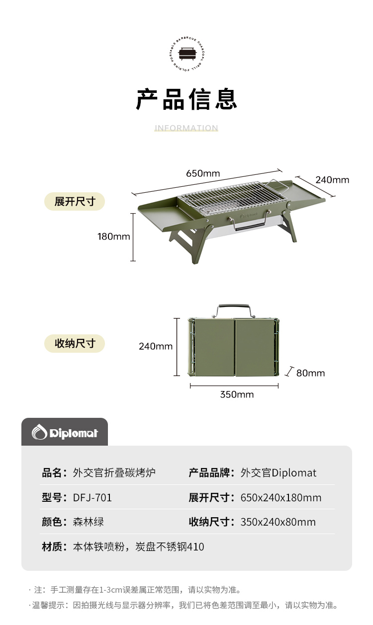 材质:炉体/铁喷粉,炭盘/不锈钢410,烤网/铁镀铬