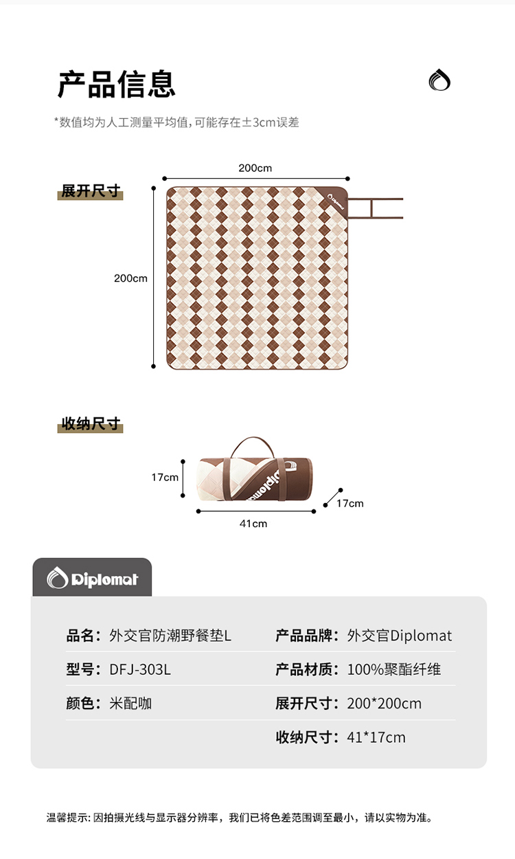 外交官防潮野餐垫L-米配咖DFJ-303L