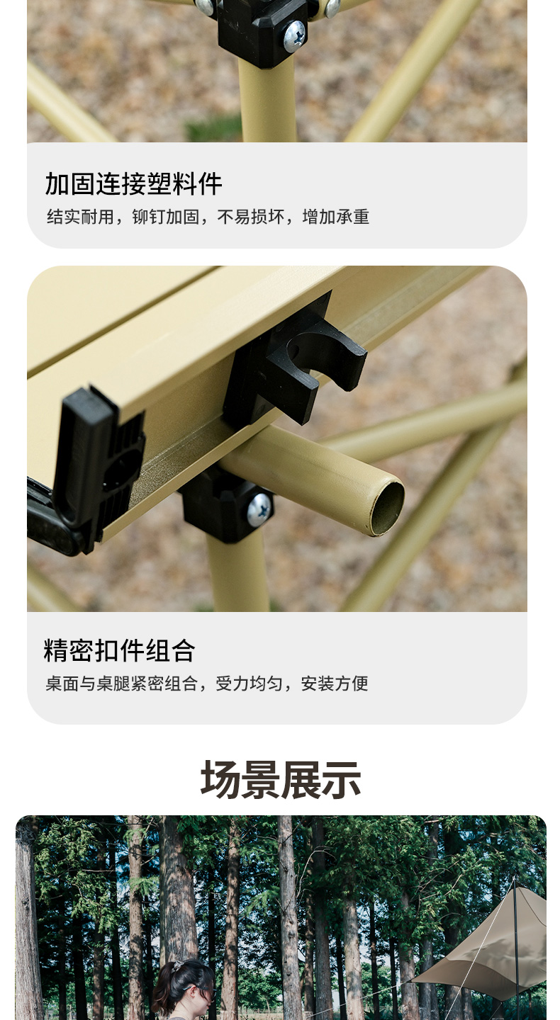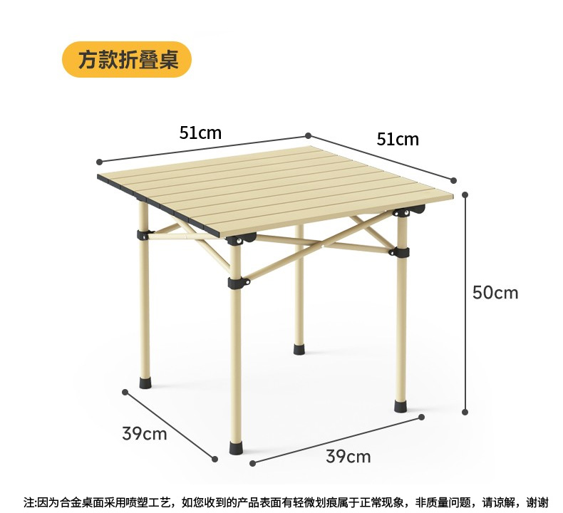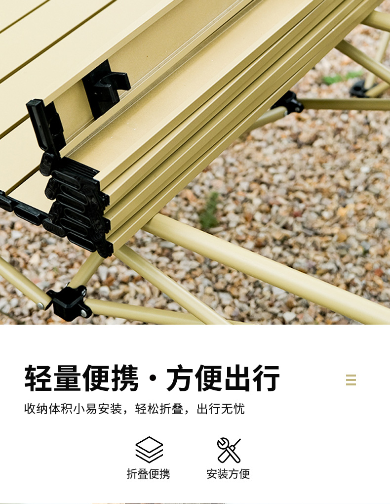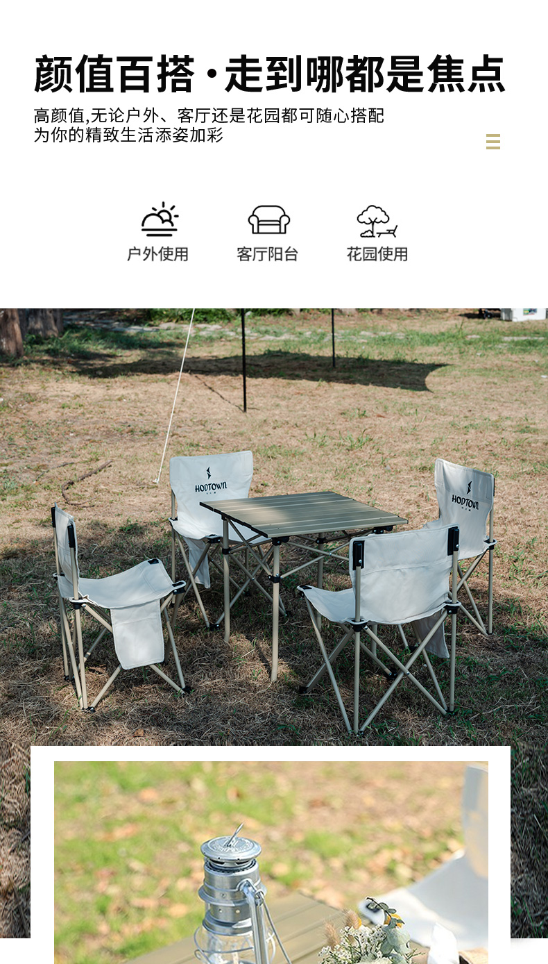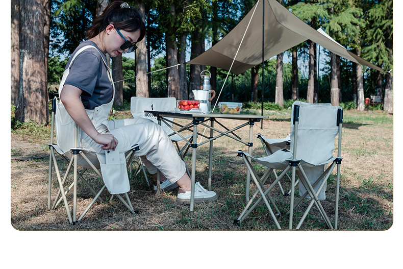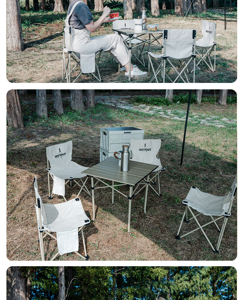 材质:铝合金桌面、铁管支架、双层600D牛津布椅面