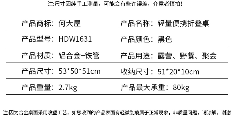 何大屋轻量便携折叠桌HDW1631