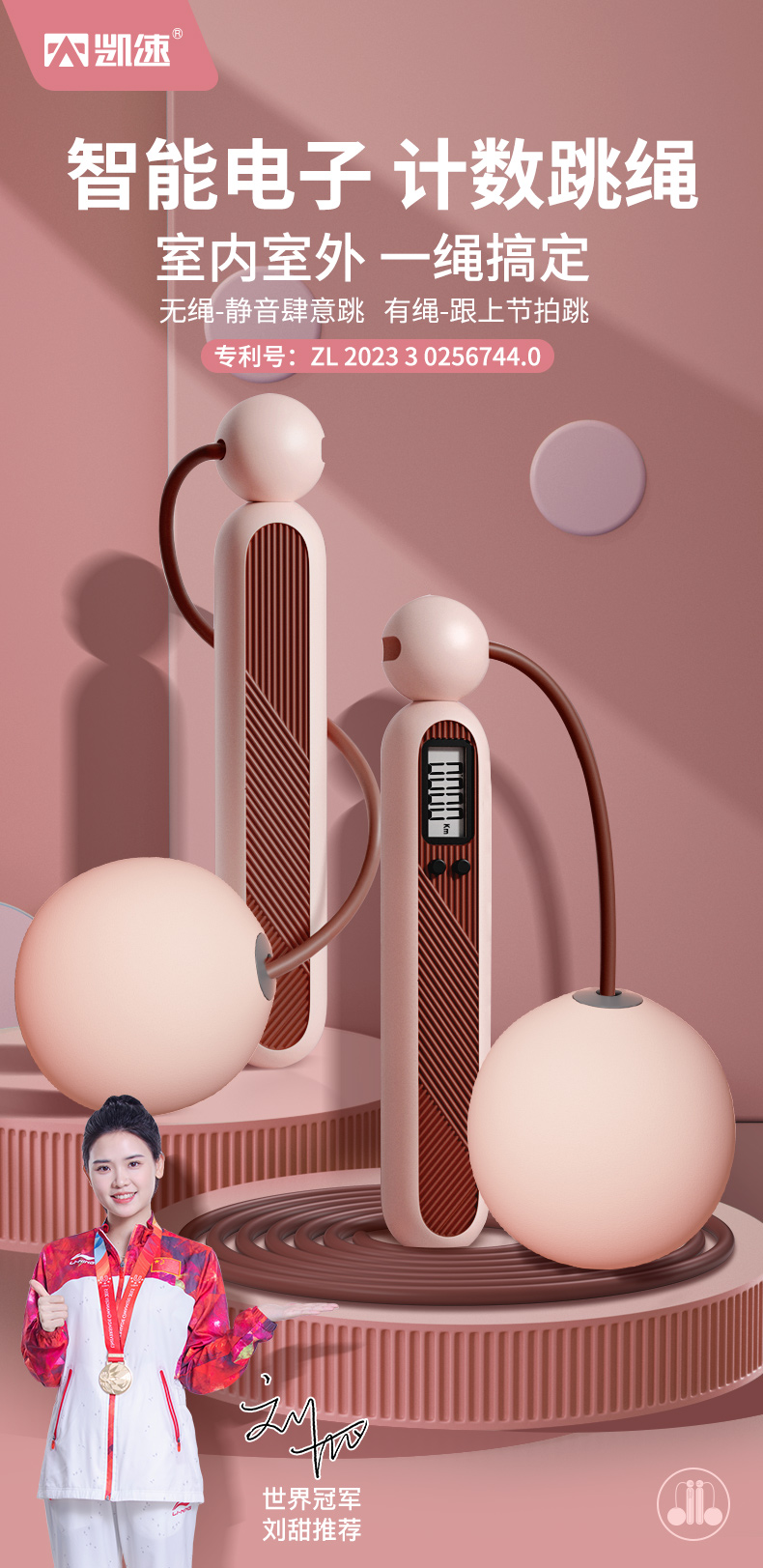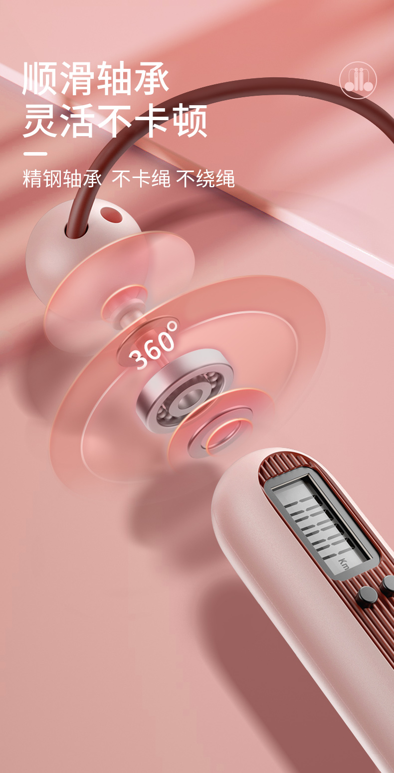 凯速智能计数负重钢丝有绳+无绳两用跳绳 胭脂粉 KJ36