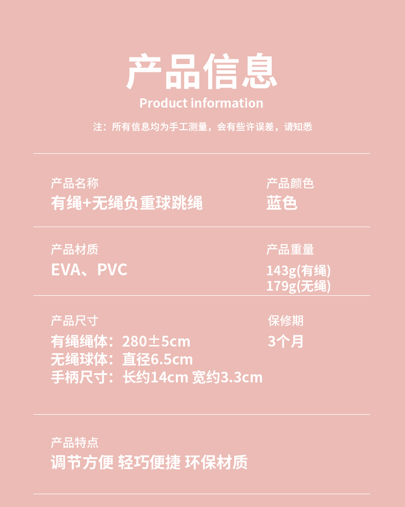 凯速轴承有绳+无绳负重球跳绳 蓝色 KJ21