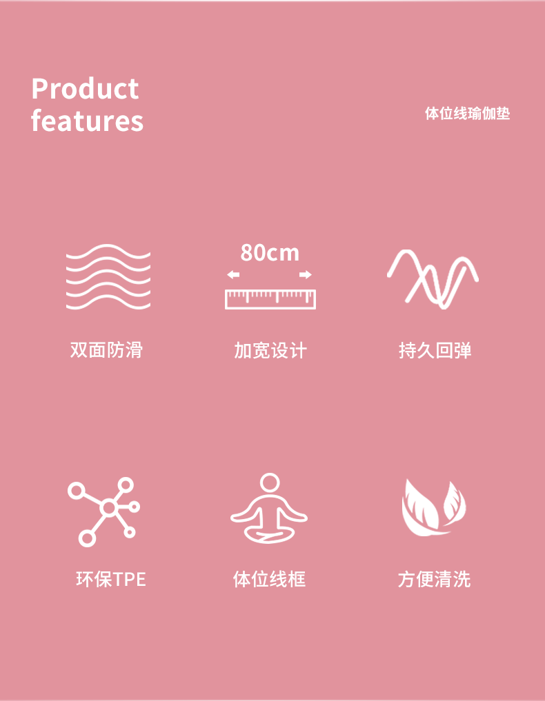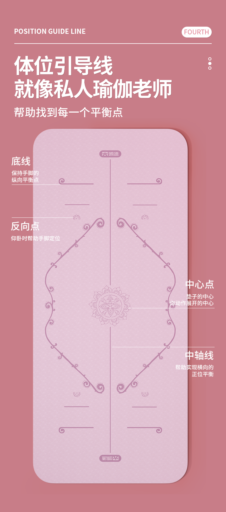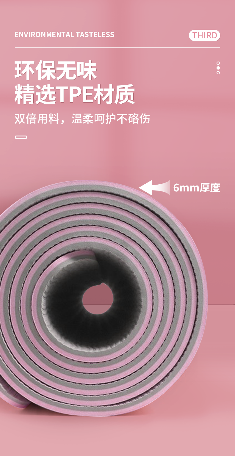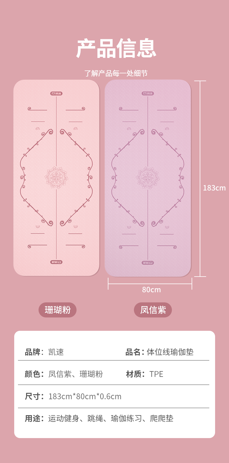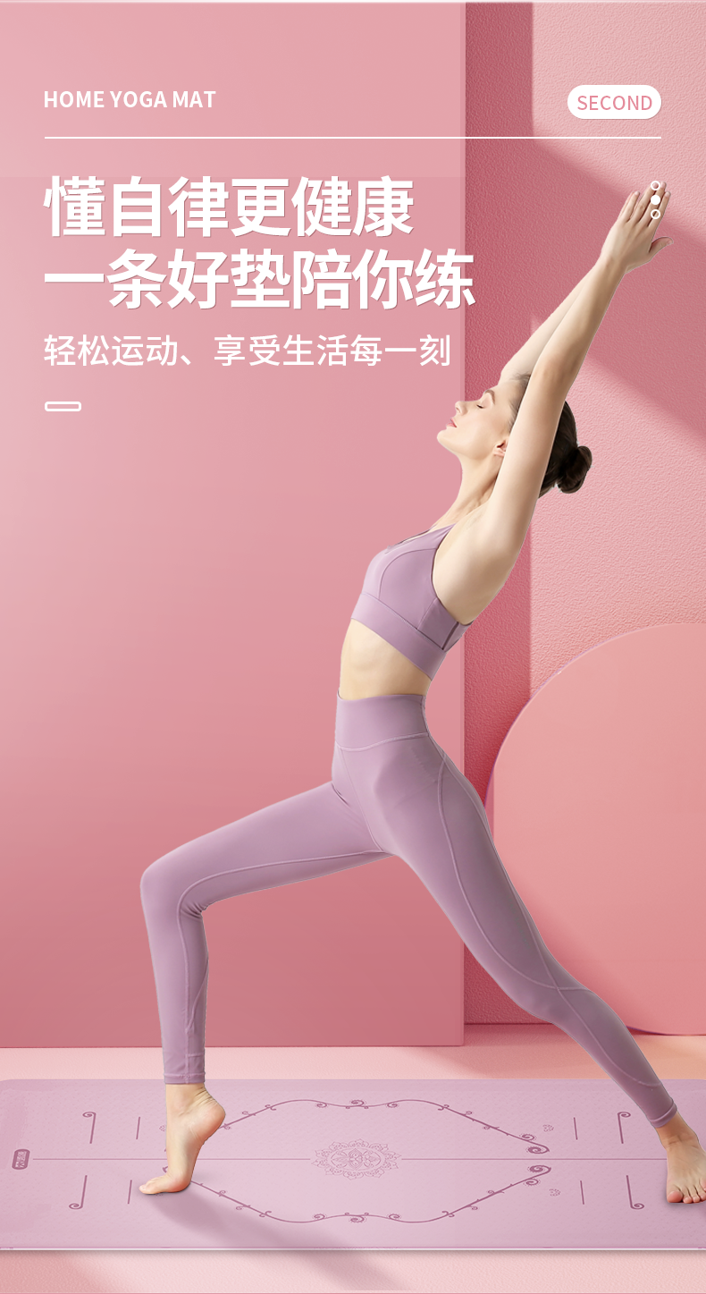 凯速双色防滑加宽带体位线TPE瑜伽垫(送绑绳)EA18