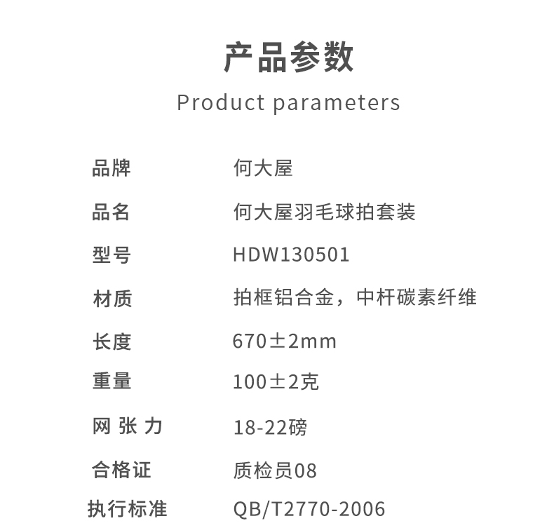 何大屋羽毛球拍套装HDW130501 3.8女神节健康好礼