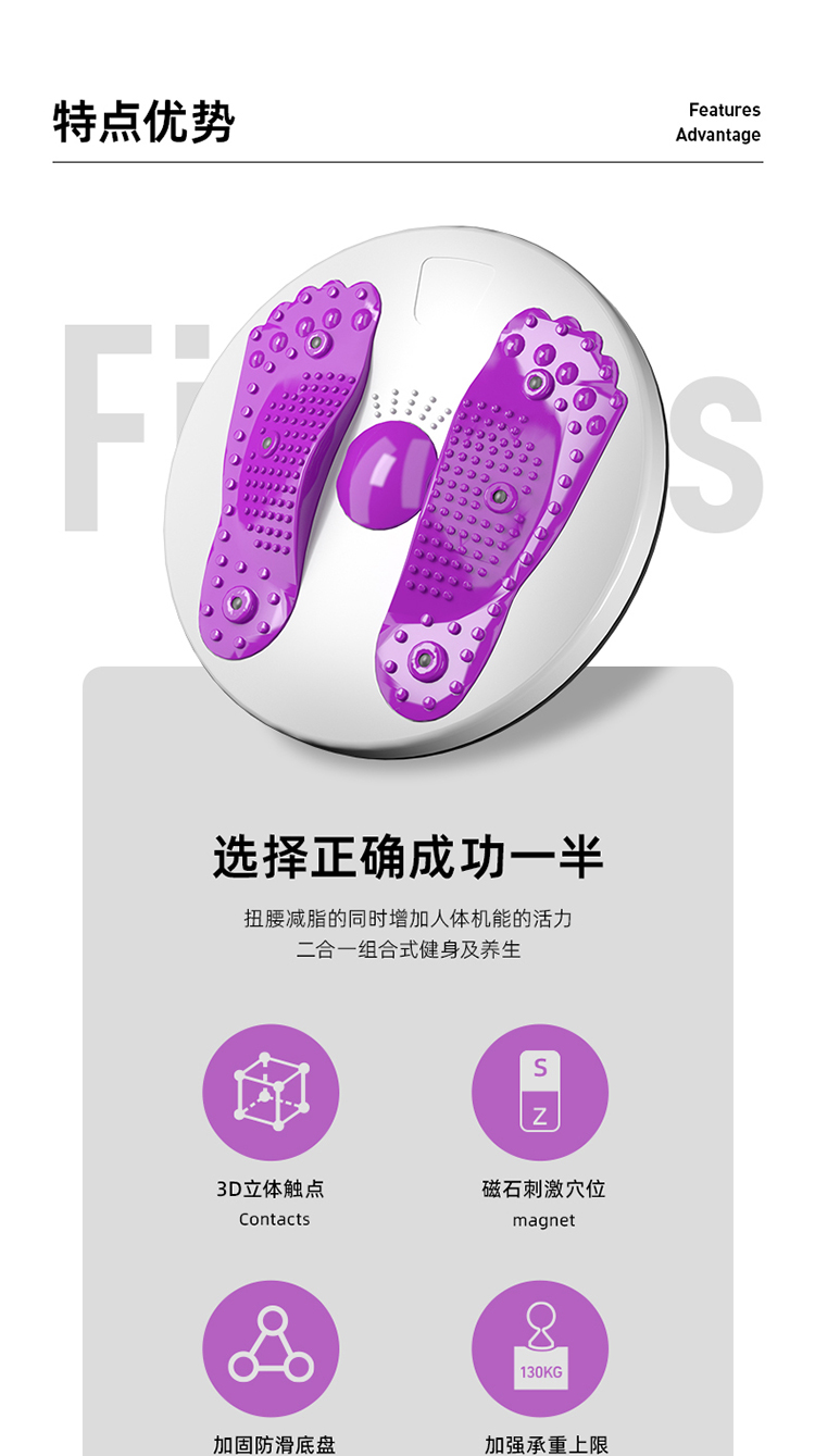 宏太(HongTai)扭腰盘扭腰机家用瘦腰健身器材女运动旋转扭扭机 浅紫色