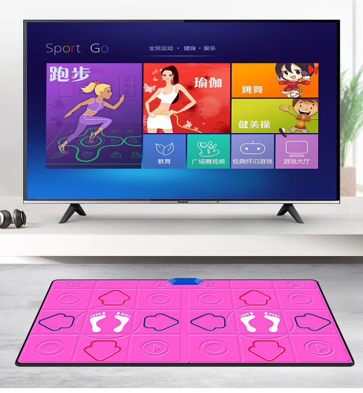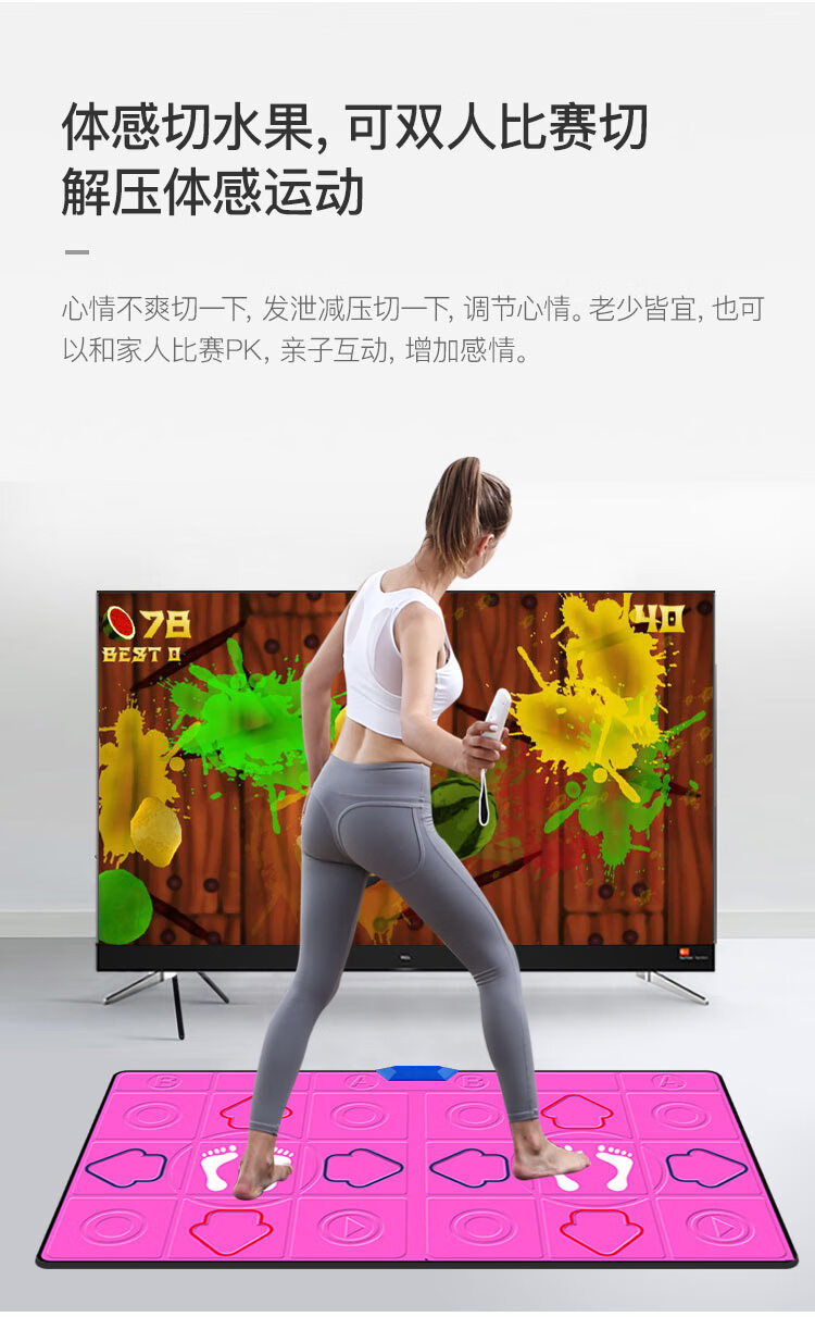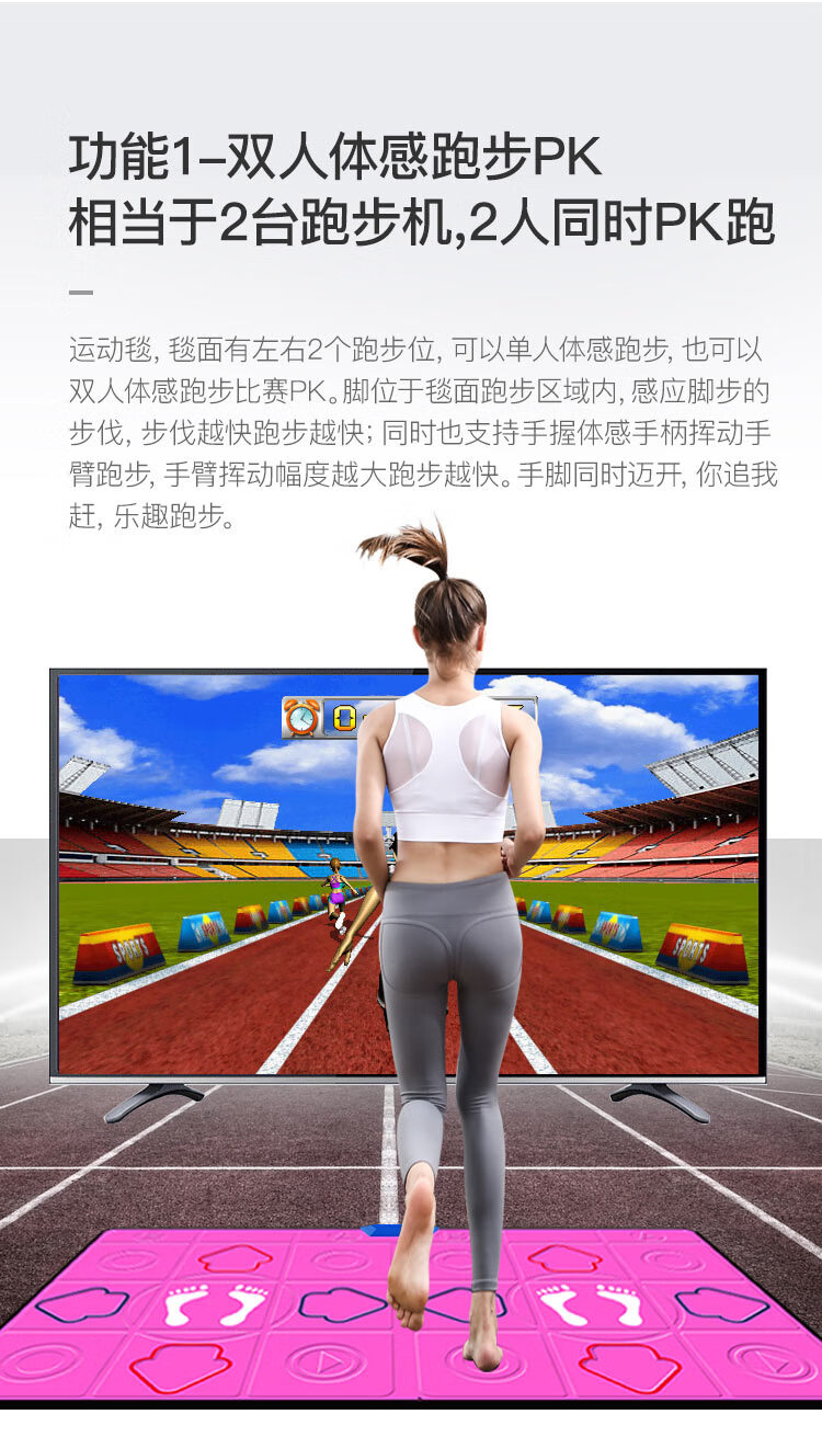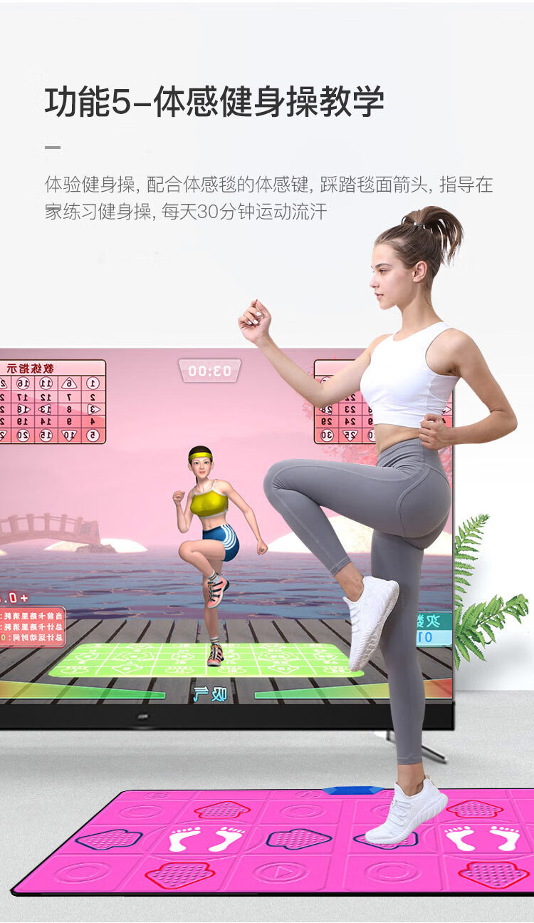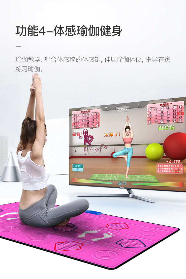 1款体感运动健身娱乐毯,集8大功能,适合年龄段2-70岁,老人,夫妻儿童都可以玩的健身产品,配无线接收器,直接插电视机。1.体感跑步功能(可以不用购买跑步机),电视机是跑步2,体感瑜伽,带指导对电视练习3.体感健身操对着电视机练习