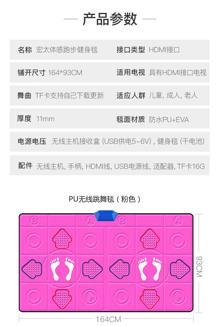 宏太(HongTai)无线双人PU加厚跳舞毯(粉色)