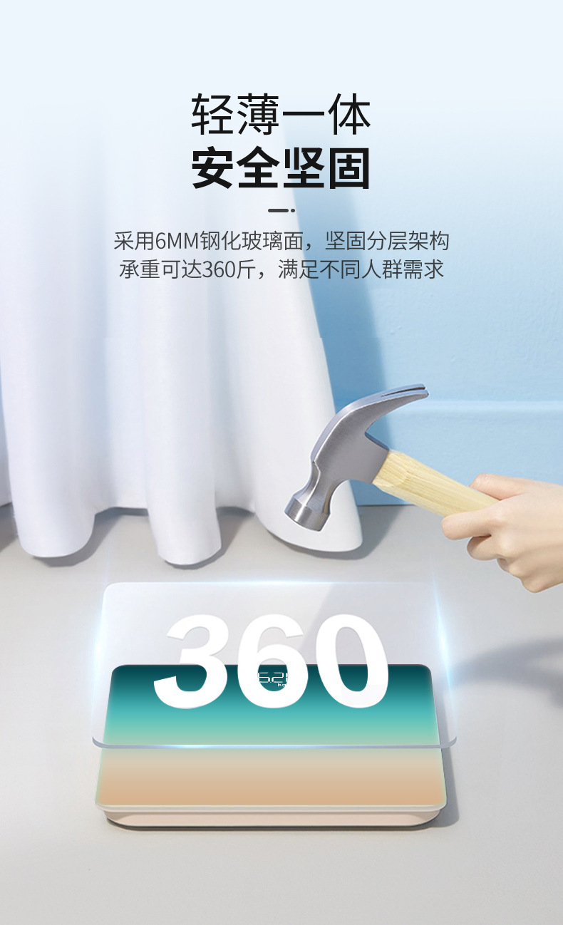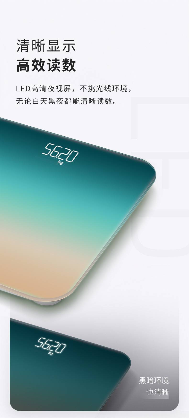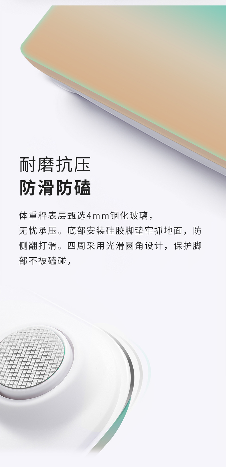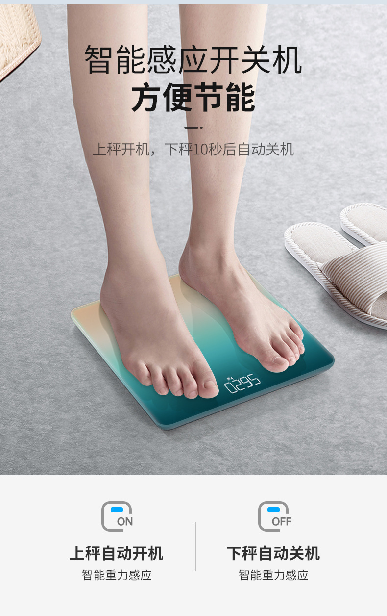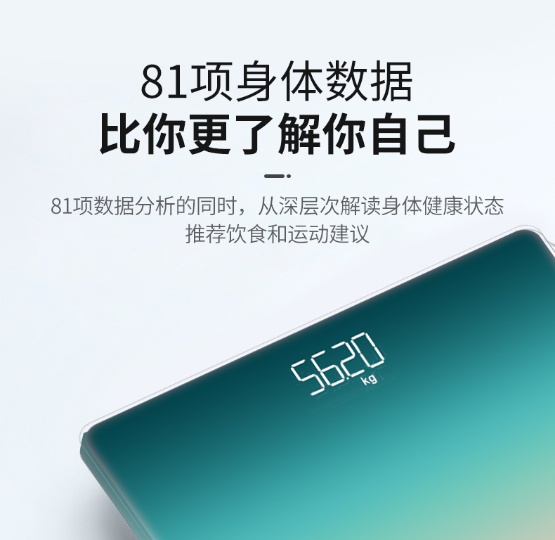 利用秤体表面的电极片与用户的双腿接触,通过一定的安全电流,测量人体电阻(bio-impedance).然后基于输入的用户数据和测量得到的人体电阻,使用我们在广泛实验的得到的公式,能够比较精确地测量人体脂肪百分比、人体水分百分比、人体肌肉百分比、骨骼重量等人体成分