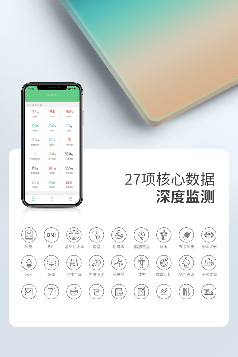 一台可以测身体脂肪的称,HTASK宏太测人体17项数据智能脂肪秤蓝牙APP,测人体脂肪率,水份率,代谢率等数据,带运动饮食热量摄入卡路里建议,运动健康减肥好帮手