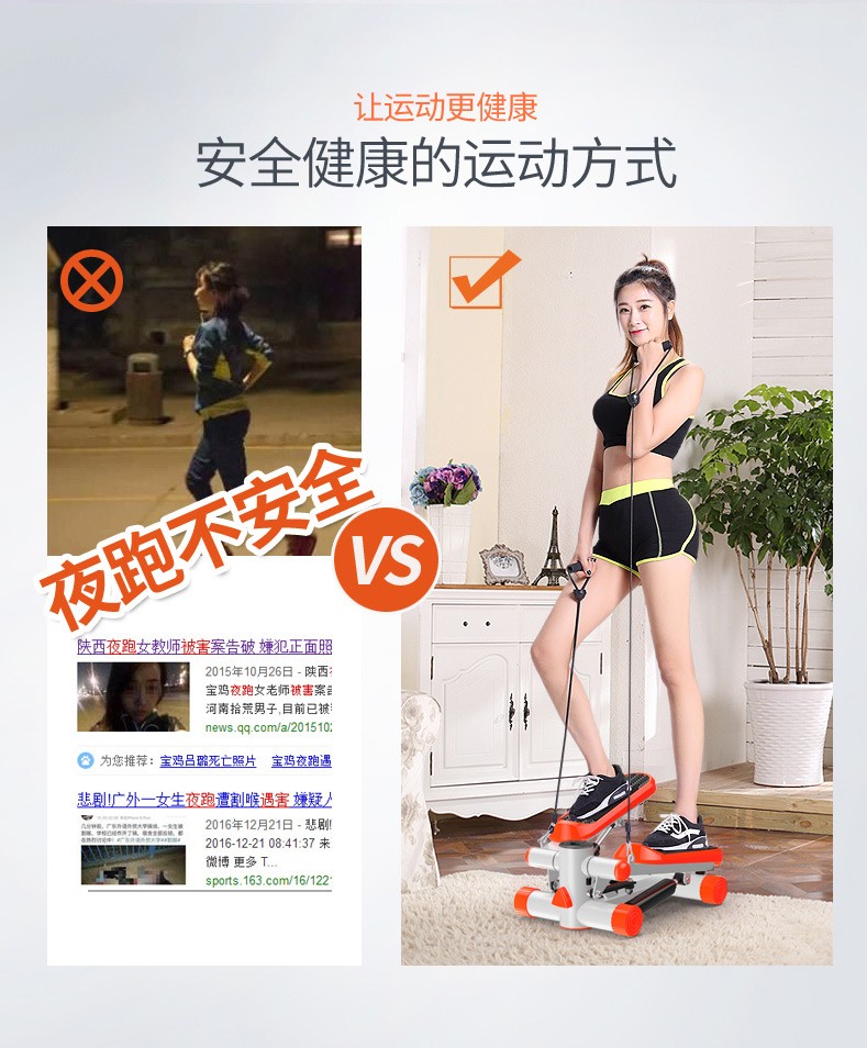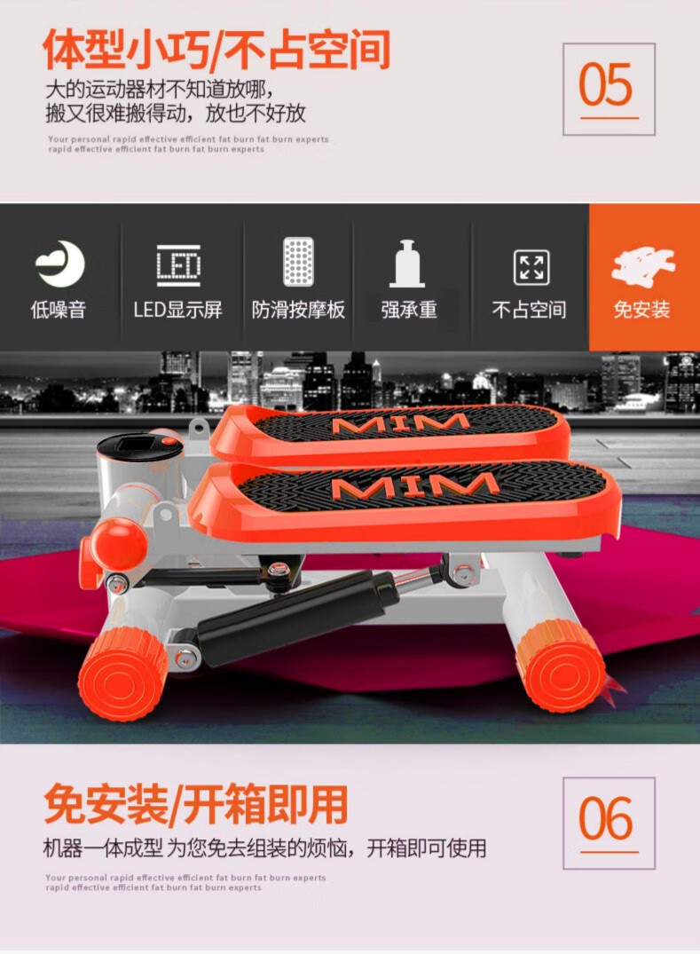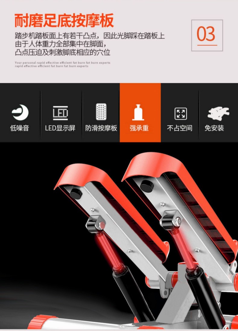 燃烧脂肪,塑造身材:踏步机锻炼能够消耗大量热量,帮助减肥塑形,尤其对于想要瘦腿、提臀的人来说,是一个很好的选择。