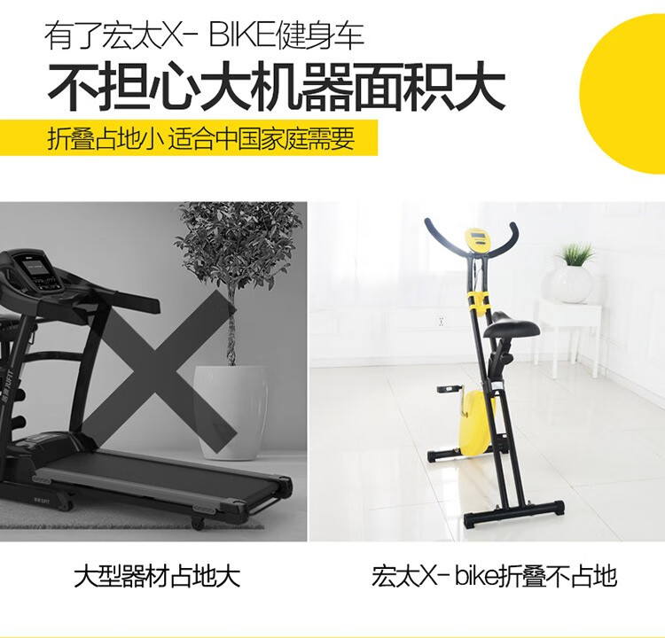 宏太(HongTai)健身单车 可折叠设计 占地小健身室内织带健身车X-Bike